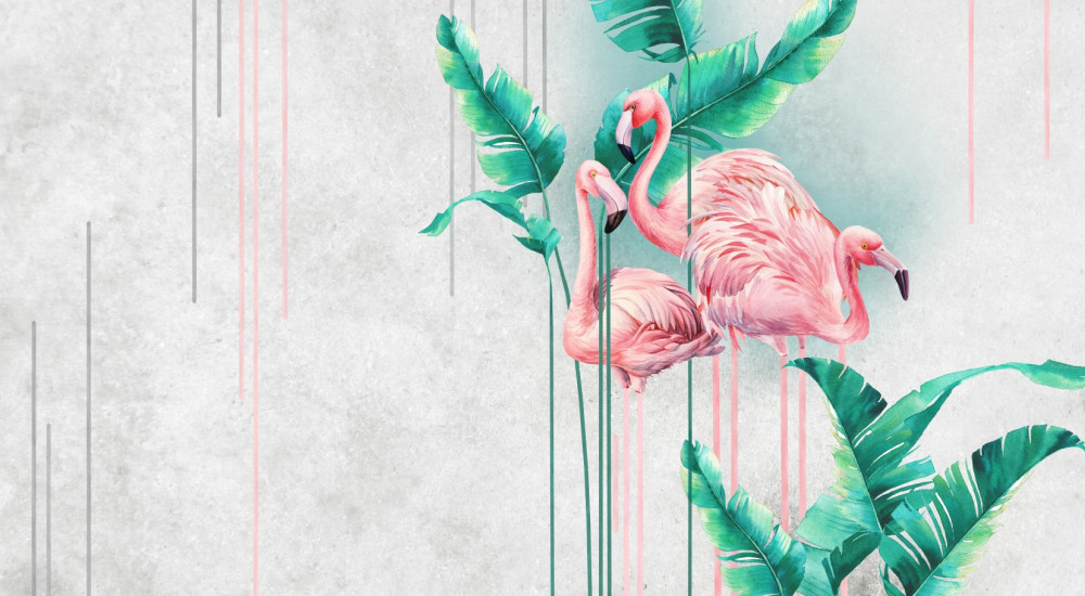 Tapeta Fototapeta różowy flaming w tropikach (artykuł a91061 ) z kategorii Fototapety Natura