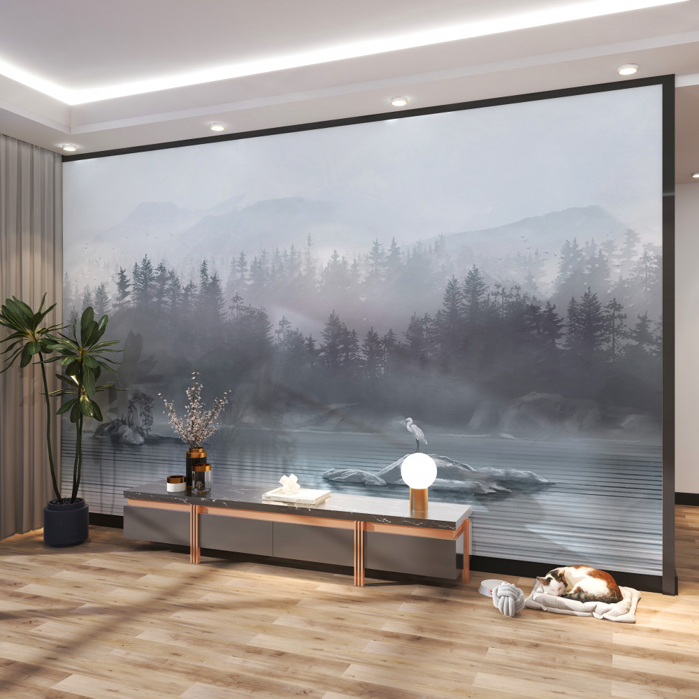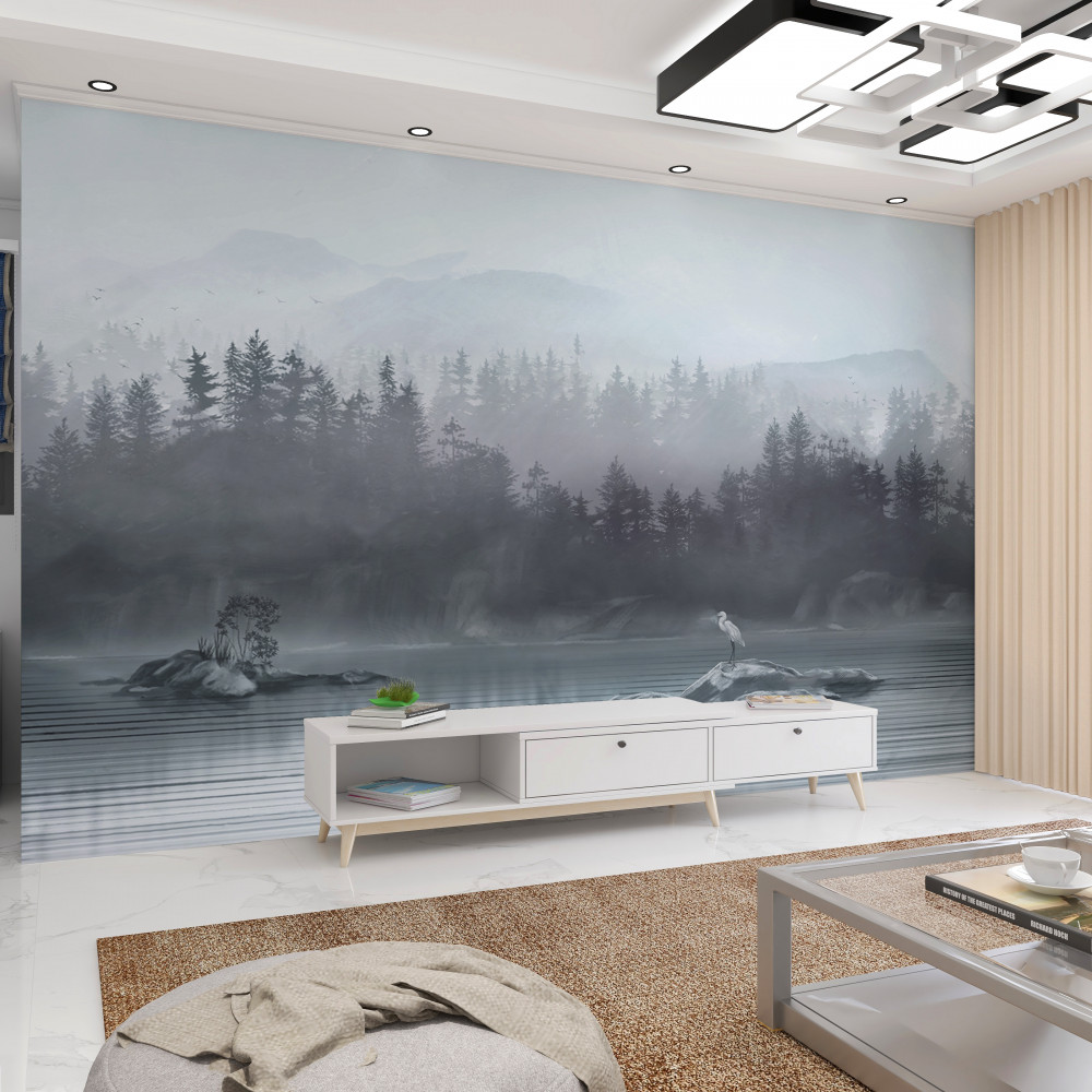 Tapeta Fototapeta samotny dźwig na skale pośrodku jeziora (artykuł a90398 ) z kategorii Fototapety Natura