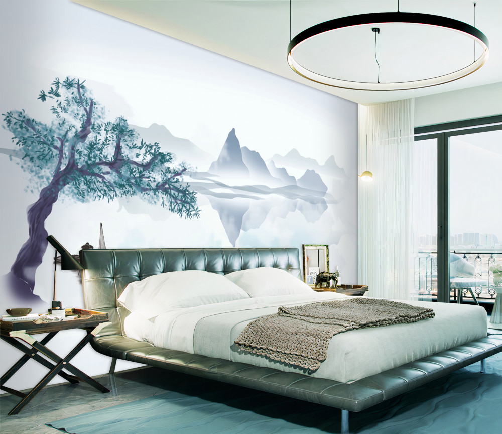 Tapeta Fototapeta samotny rybak przy drzewie na jeziorze (artykuł a91874 ) z kategorii Fototapety Natura