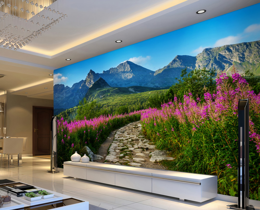 Tapeta Fototapeta ścieżka wśród kwiecistej łąki w górach (artykuł a92604 ) z kategorii Fototapety Natura