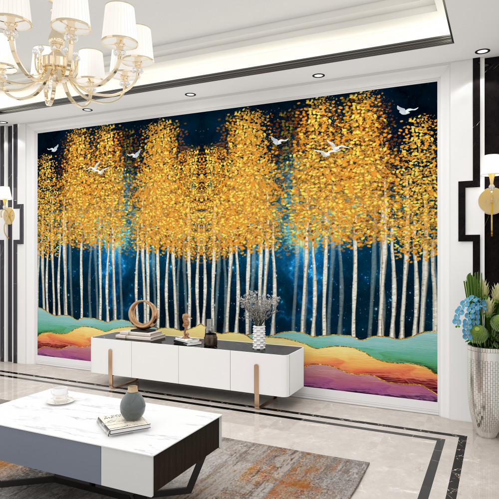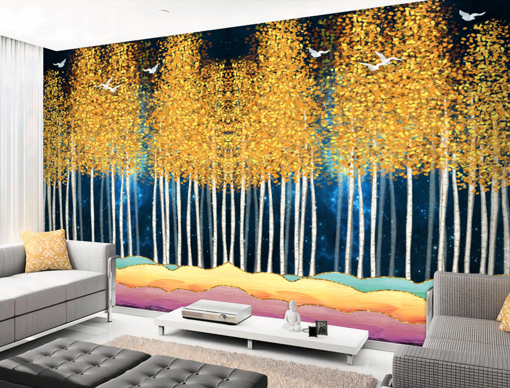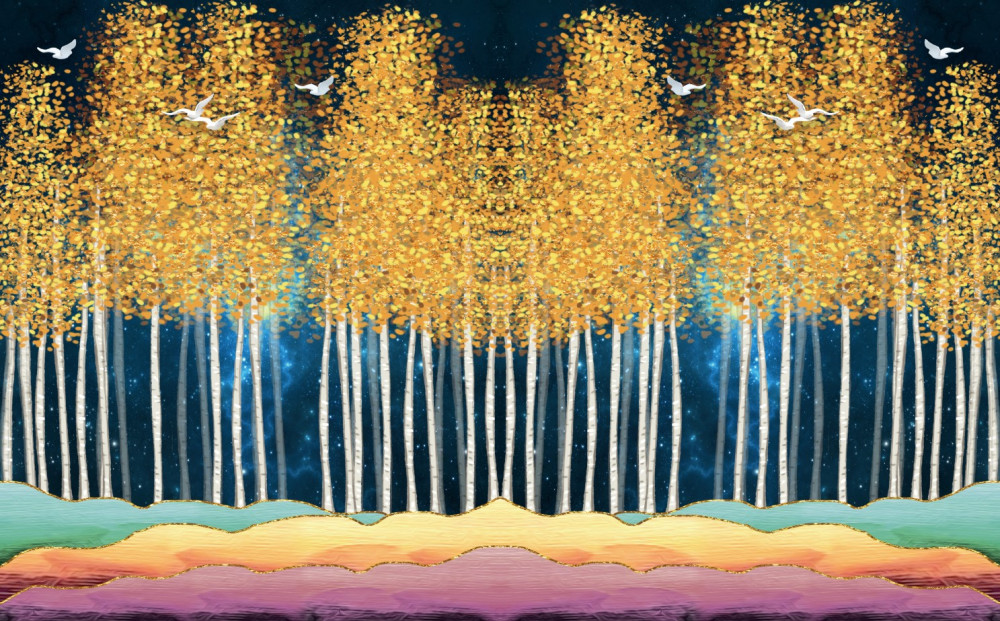 Tapeta Fototapeta smukłe brzozy przygotowują się do nocnego snu (artykuł a91644 ) z kategorii Fototapety Natura