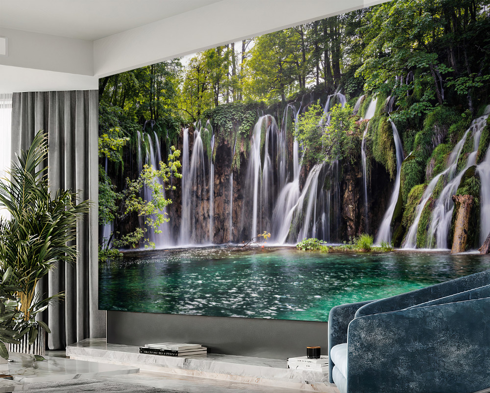 Tapeta Fototapeta spadające wodospady do kryształowego jeziora (artykuł a88421 ) z kategorii Fototapety Natura