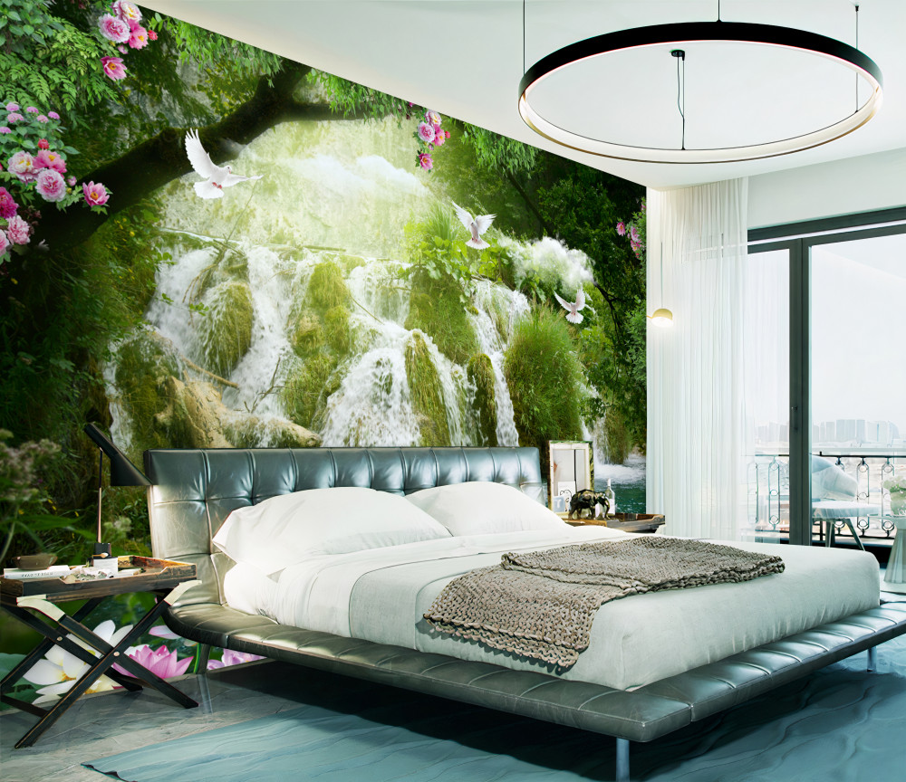 Tapeta Fototapeta spadające wody leśnego wodospadu (artykuł a90917 ) z kategorii Fototapety Natura