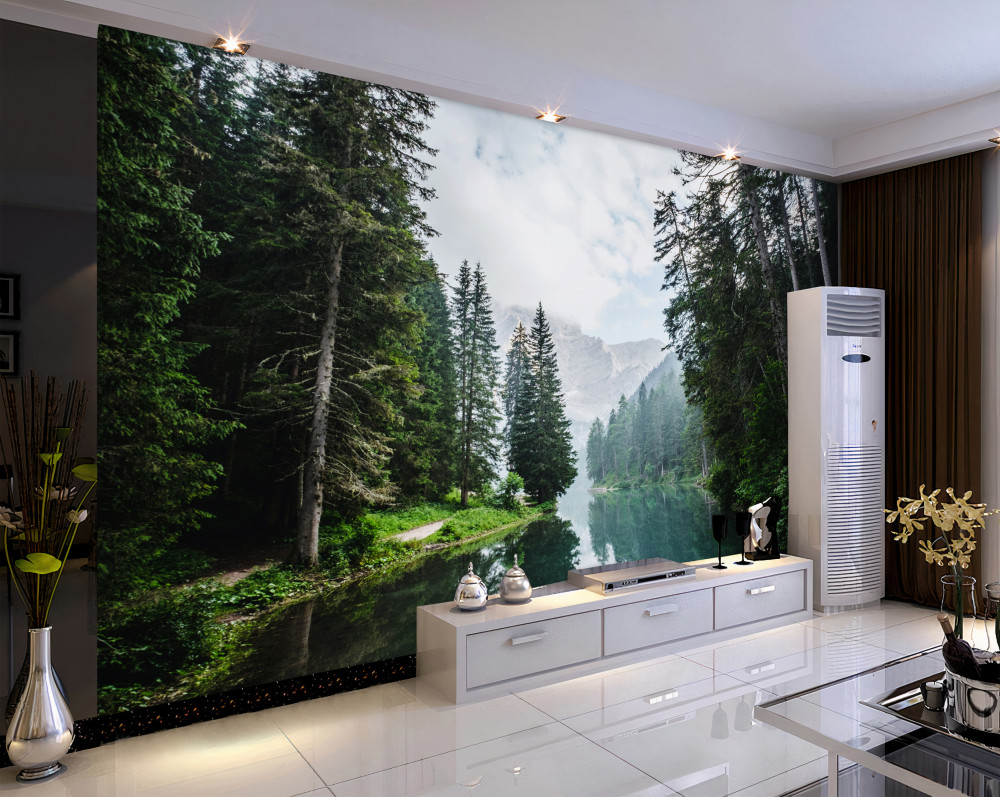 Tapeta Fototapeta spokojne jezioro w lesie sosnowym (artykuł a92710 ) z kategorii Fototapety Natura