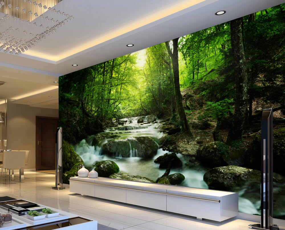 Tapeta Fototapeta spokojne wody wodospadu w zielonym lesie (artykuł a94003 ) z kategorii Fototapety Natura
