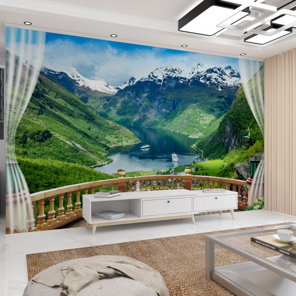 Tapeta Fototapeta taras z widokiem na górską rzekę (artykuł a90679 ) z kategorii Fototapety Natura