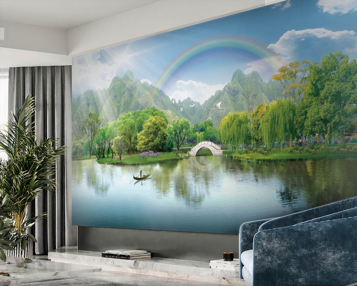 Tapeta Fototapeta Tęcza nad górskim jeziorem w Japonii (artykuł a98722 ) z kategorii Fototapety Natura