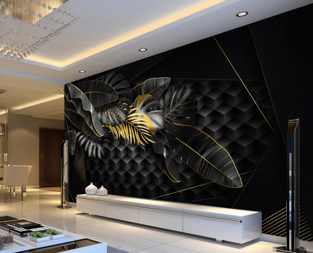 Tapeta Fototapeta teksturowane czarne pióra ze złotą proporcją (artykuł a90053 ) z kategorii Fototapety Natura