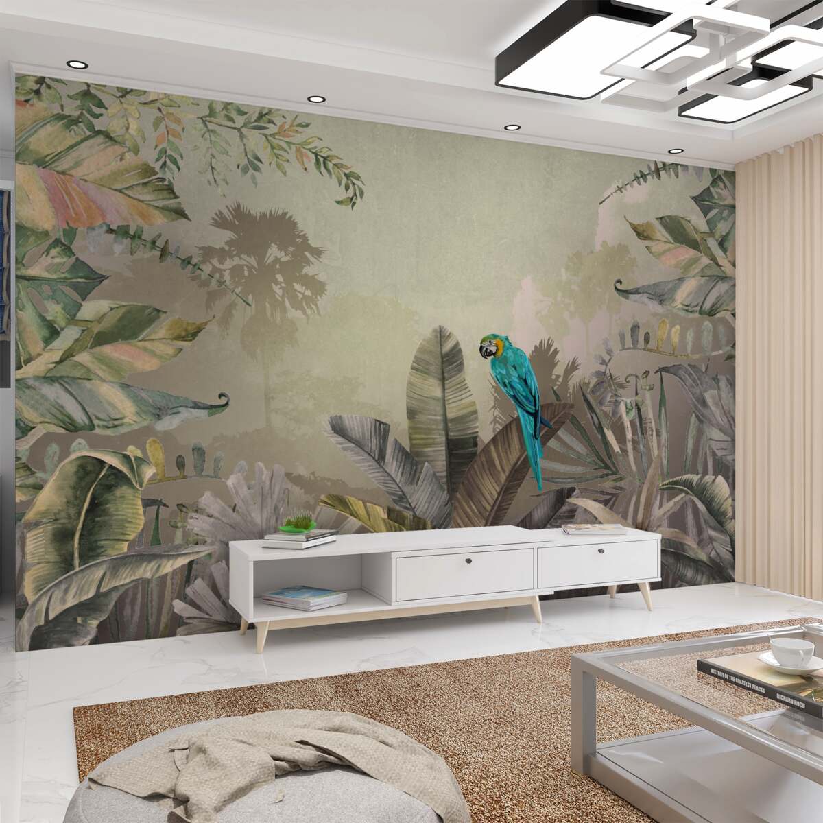 Tapeta Fototapeta Tropikalna dżungla i jasna papuga (artykuł a98496 ) z kategorii Fototapety Natura