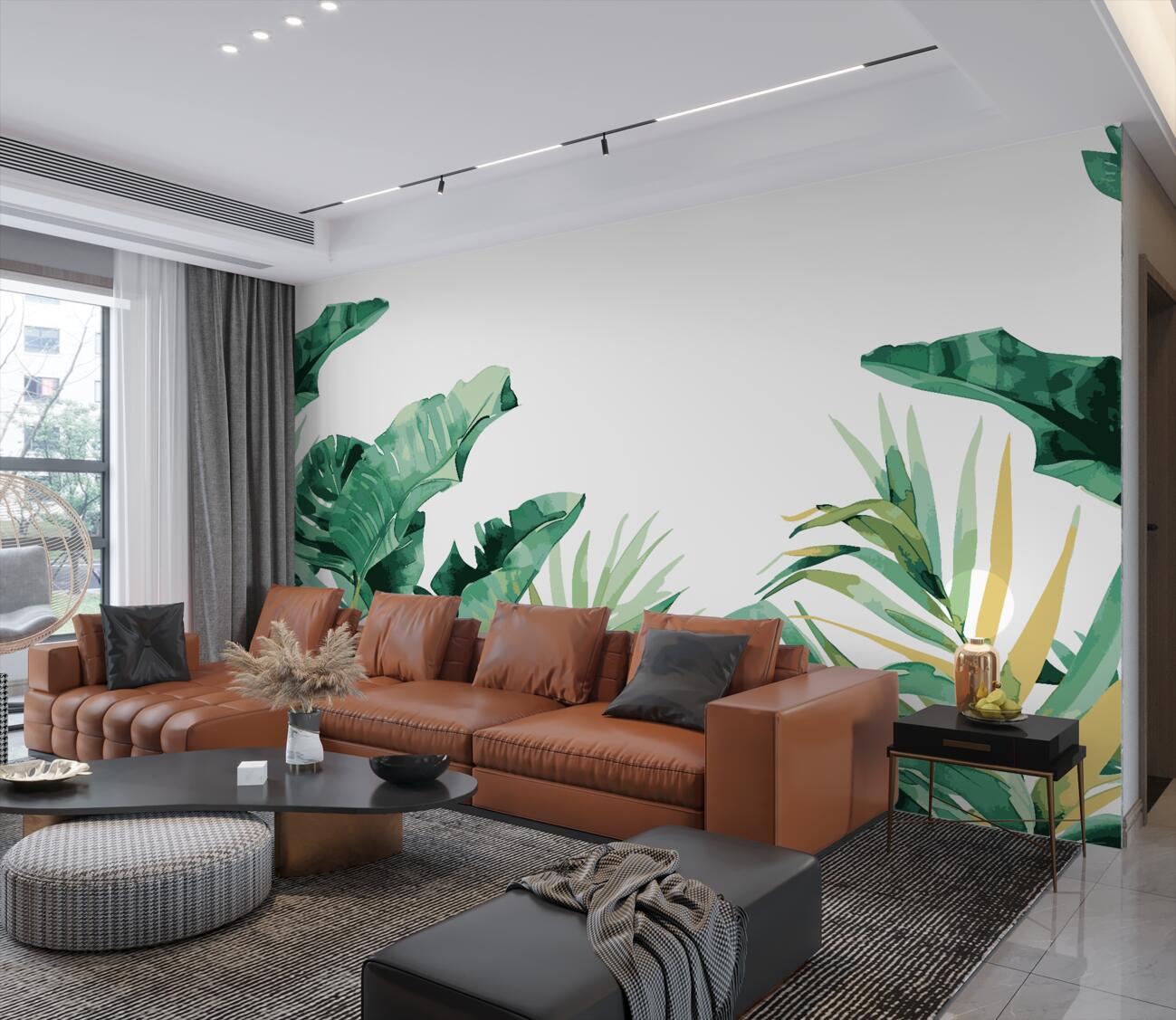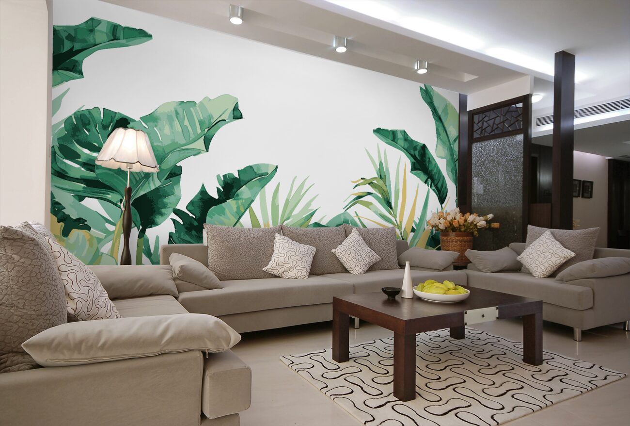 Tapeta Fototapeta Tropikalne liście z kolorami akwareli (artykuł a99980 ) z kategorii Fototapety Natura