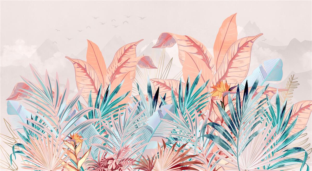 Tapeta Fototapeta Wielokolorowe liście paproci (artykuł a98550 ) z kategorii Fototapety Natura