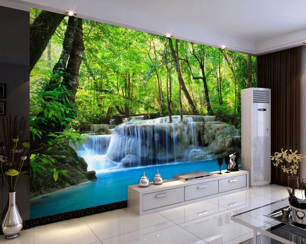 Tapeta Fototapeta wodospad w zielonym lesie (artykuł a93091 ) z kategorii Fototapety Natura