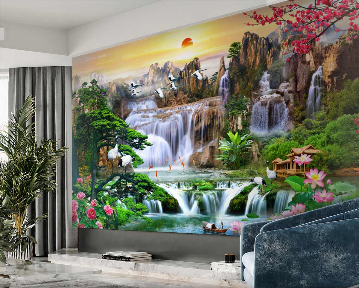 Tapeta Fototapeta Wodospady i ptaki (artykuł a90485 ) z kategorii Fototapety Natura