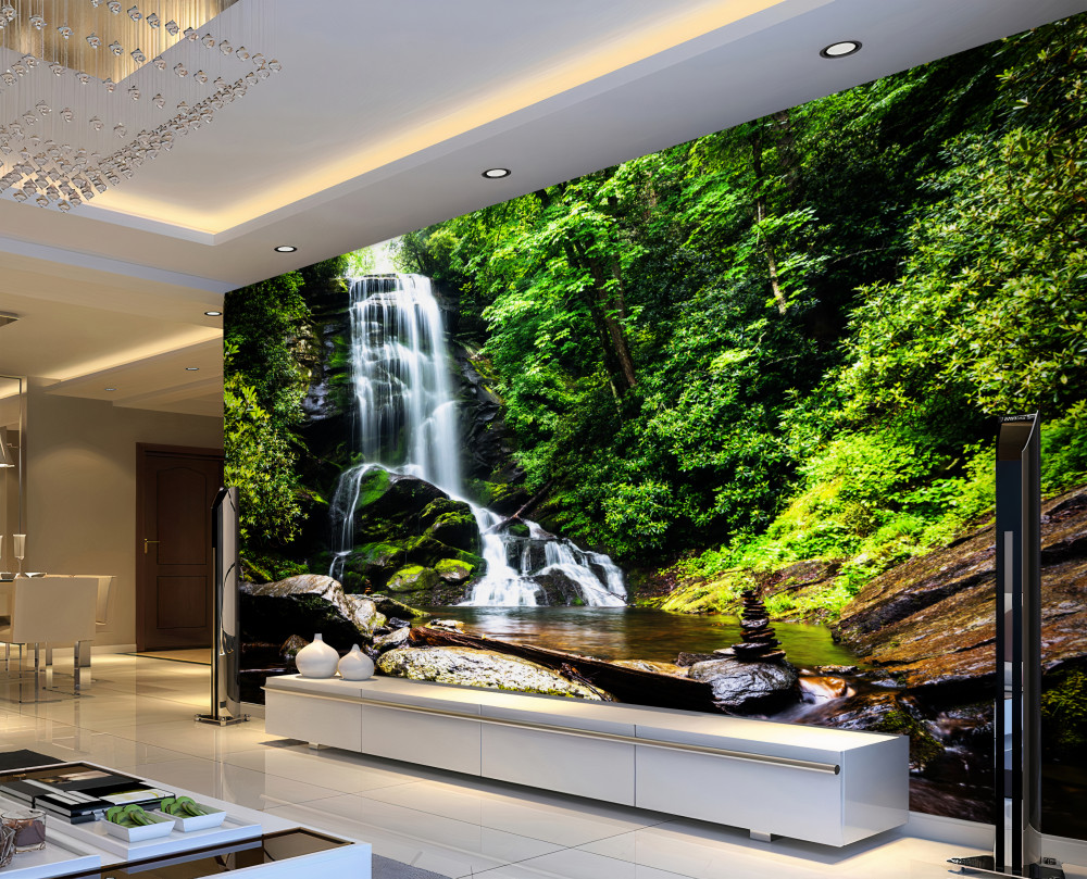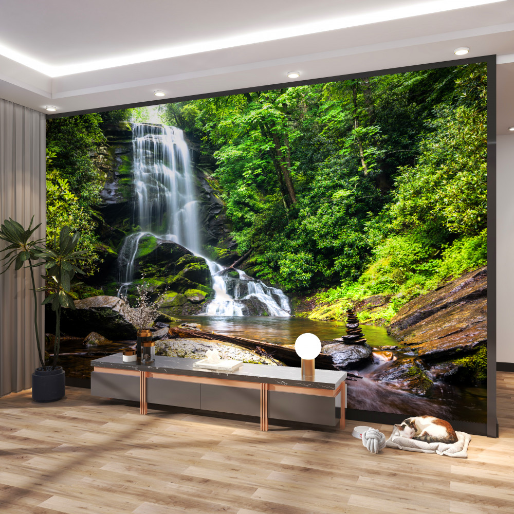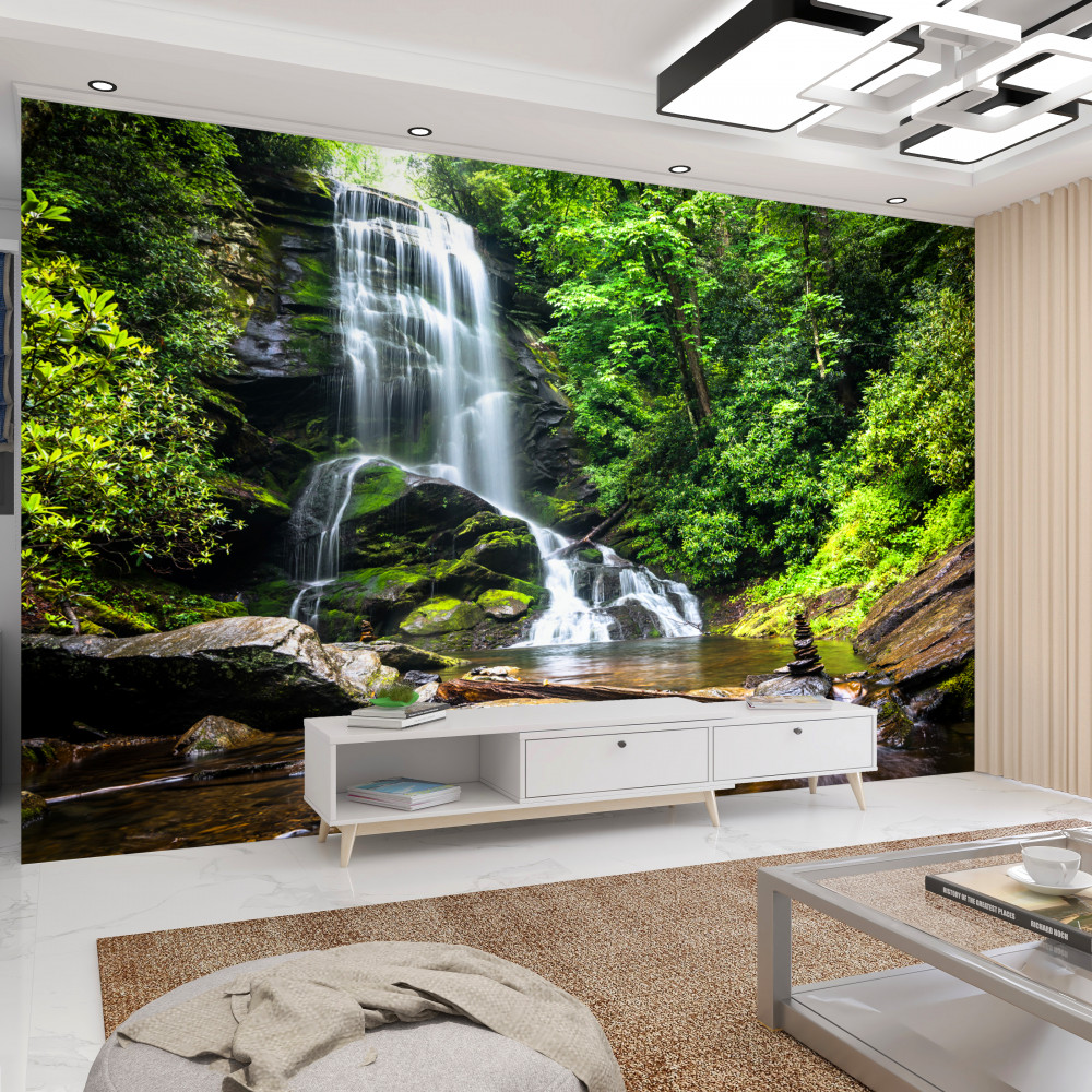Tapeta Fototapeta wody spadające z górskiego wodospadu do lasu (artykuł a94004 ) z kategorii Fototapety Natura