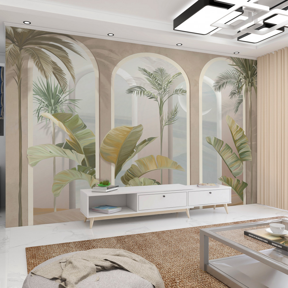 Tapeta Fototapeta wysokie łuki z palmami i paprociami (artykuł a93313 ) z kategorii Fototapety Natura