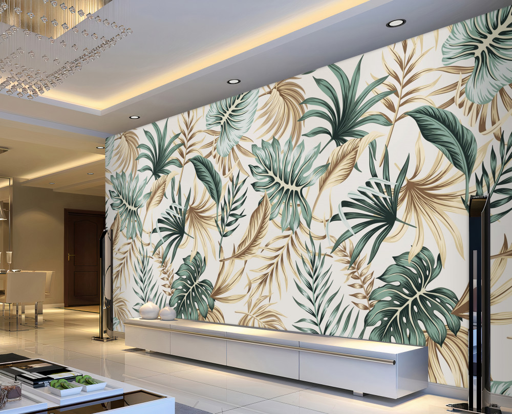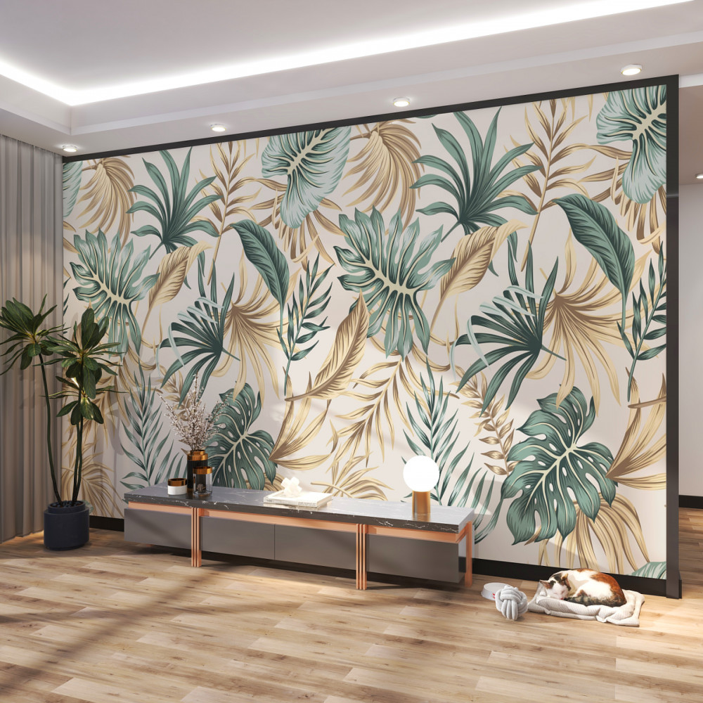 Tapeta Fototapeta zielone i złote liście dżungli (artykuł a93272 ) z kategorii Fototapety Natura