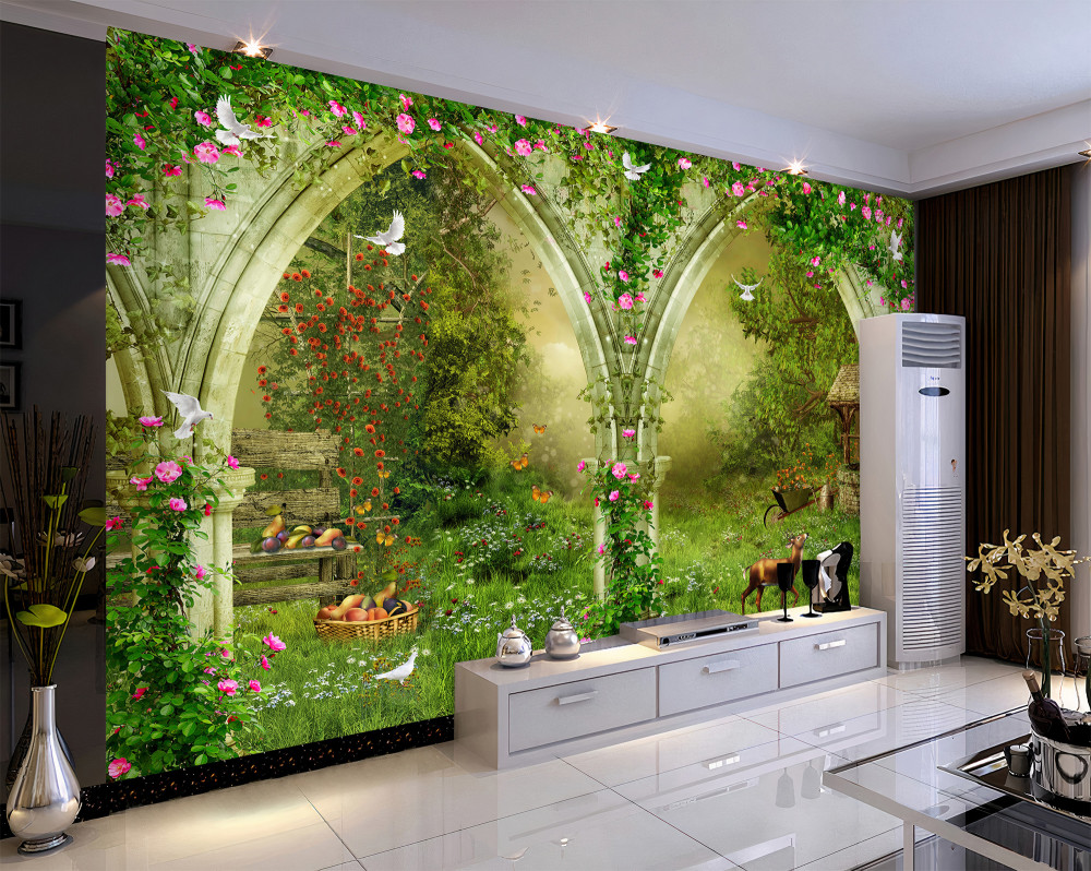 Tapeta Fototapeta zielone kamienne łuki ze zwierzętami (artykuł a94123 ) z kategorii Fototapety Natura