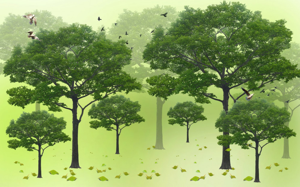 Tapeta Fototapeta zielony las liściasty rano (artykuł a91635 ) z kategorii Fototapety Natura