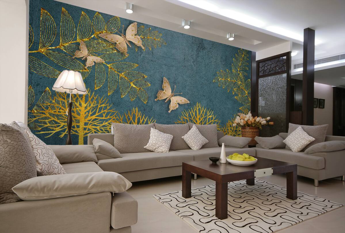 Tapeta Fototapeta Złoty las i motyle w nocy (artykuł a98327 ) z kategorii Fototapety Natura