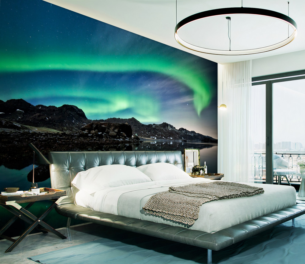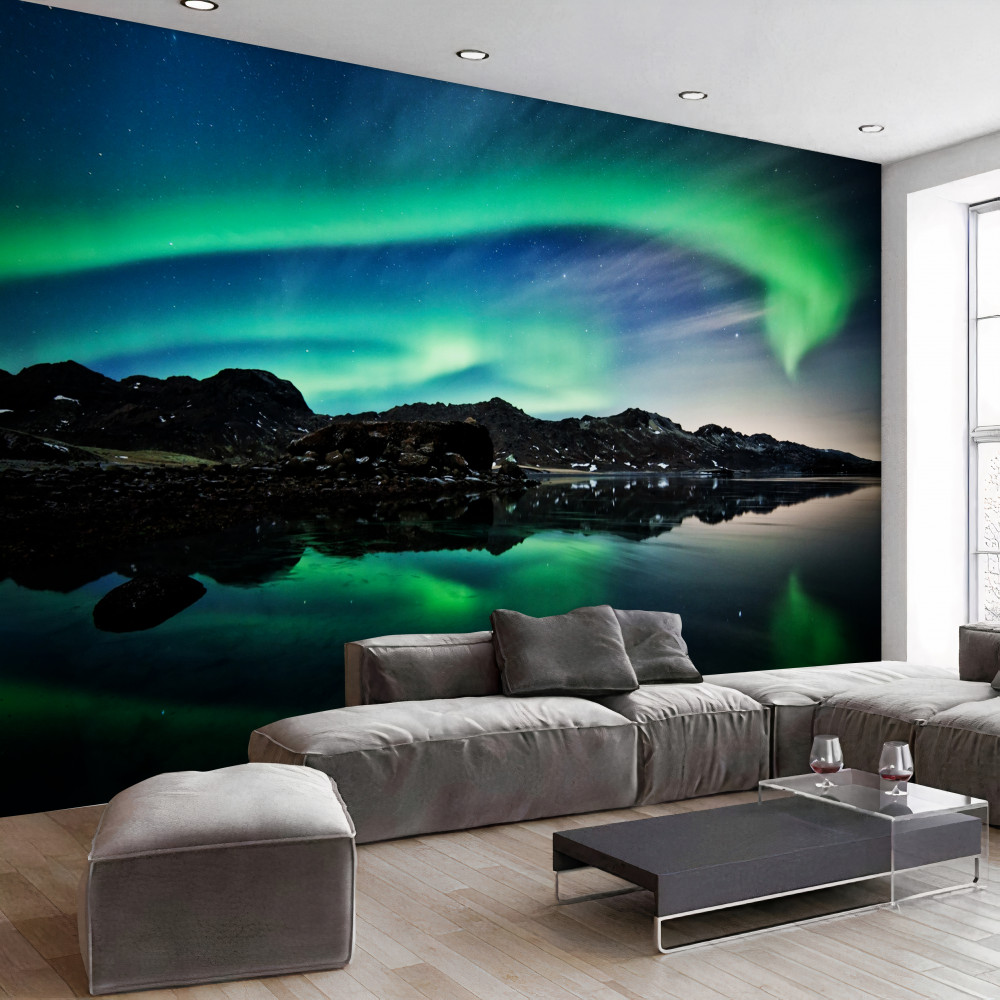 Tapeta Fototapeta zorza polarna nad jeziorem (artykuł a92382 ) z kategorii Fototapety Natura