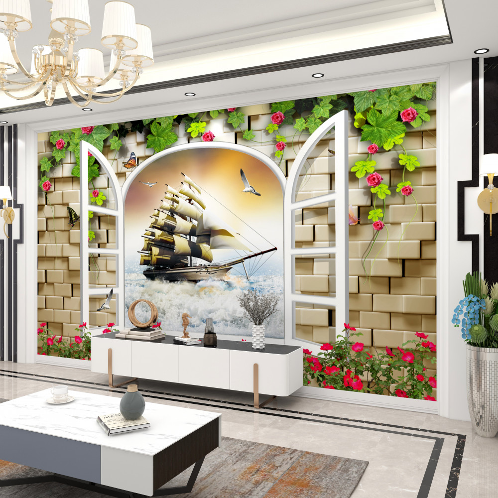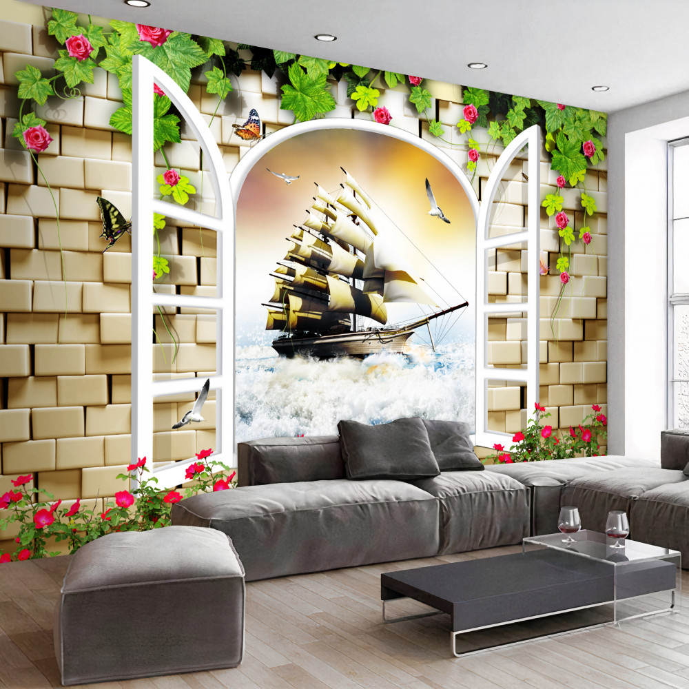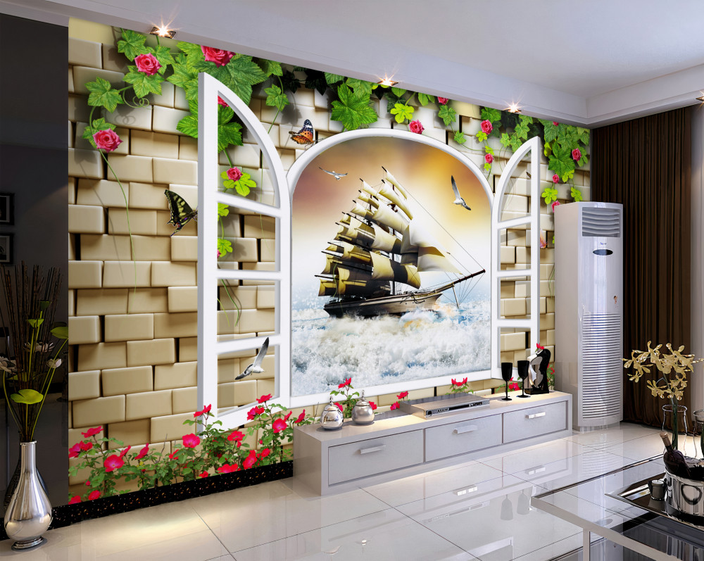 Tapeta Fototapeta okno z widokiem na żaglowiec (artykuł a91878 ) z kategorii Fototapety Okno