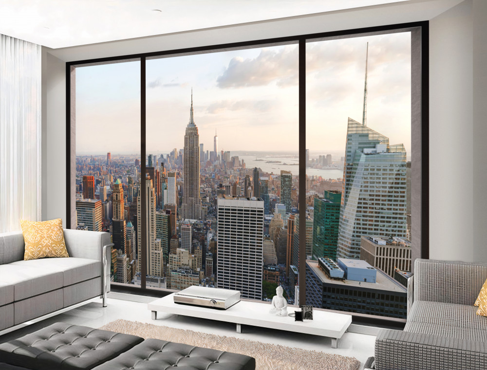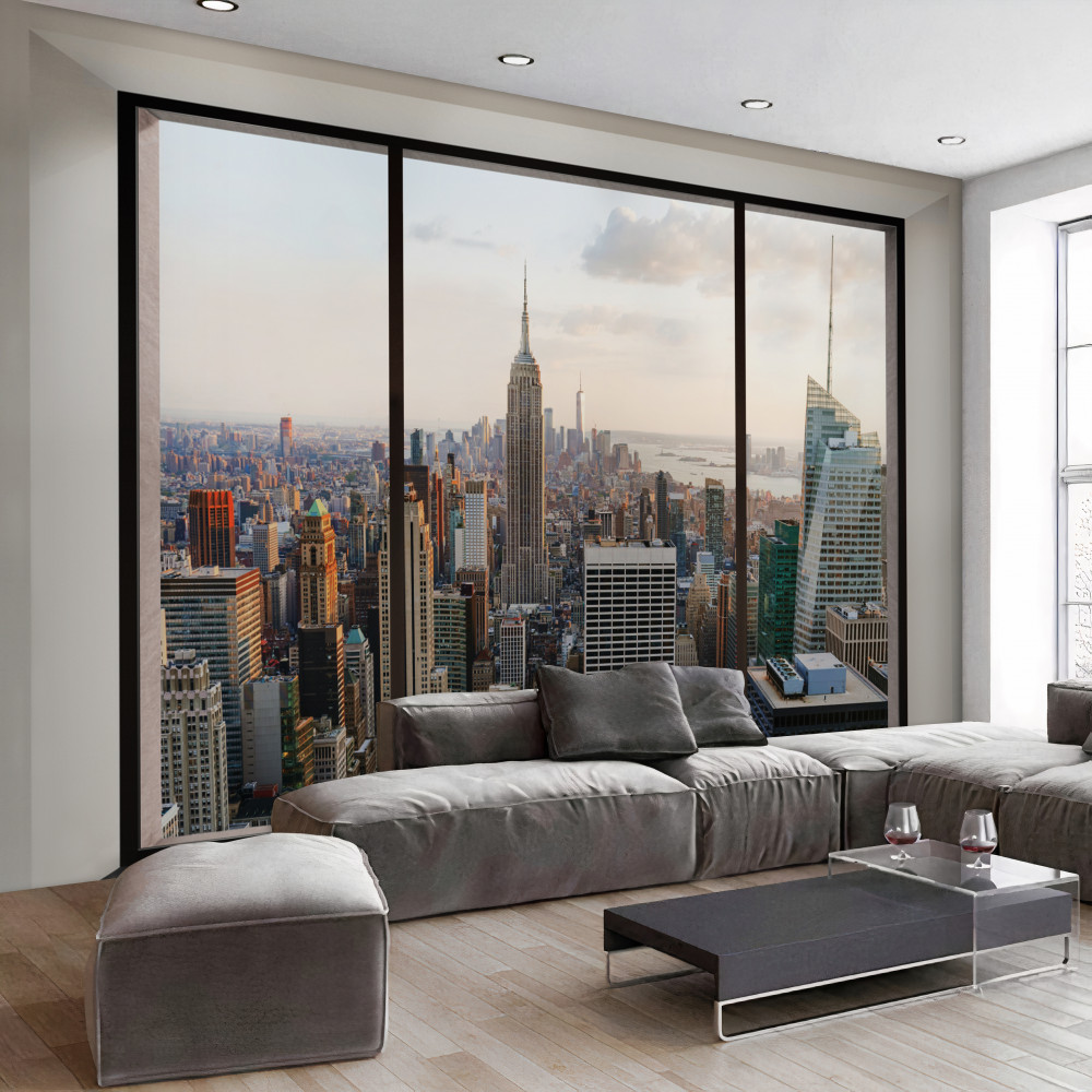 Tapeta Fototapeta widok z okna na centrum Nowego Jorku (artykuł a91115 ) z kategorii Fototapety Okno