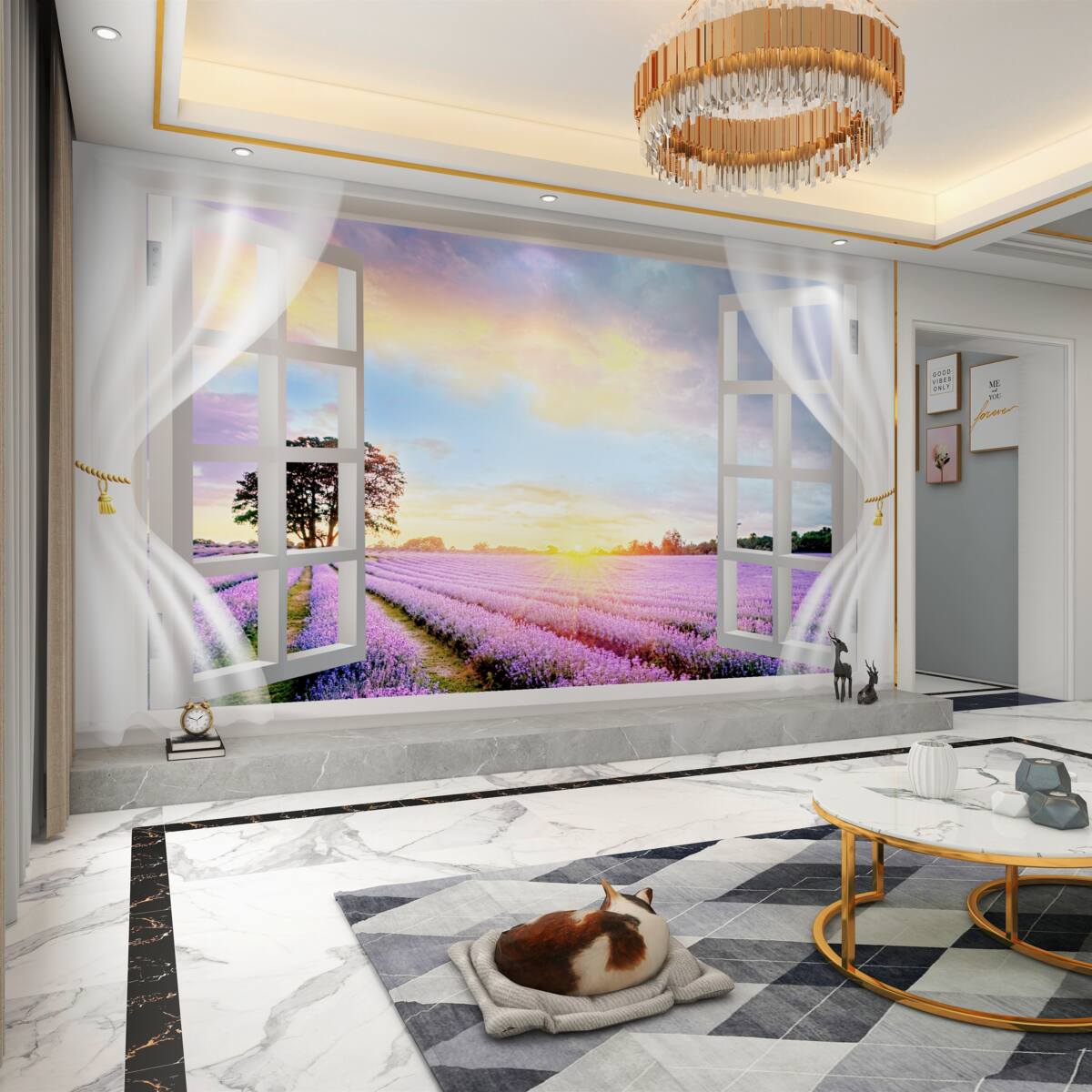Tapeta Fototapeta Zachód słońca na polu lawendy (artykuł a98943 ) z kategorii Fototapety Okno