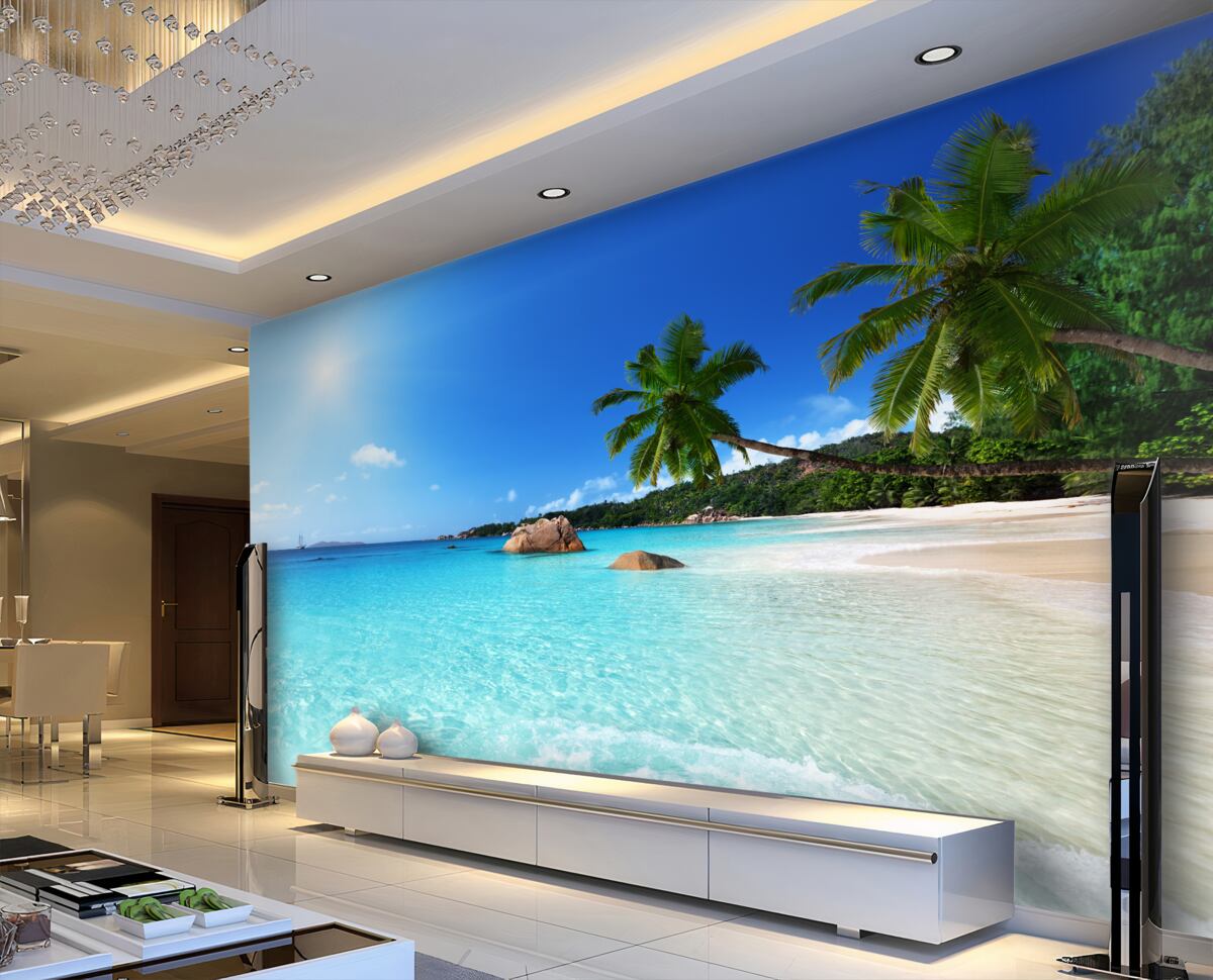 Tapeta Fototapeta niebieska woda w pobliżu tropikalnej plaży (artykuł a96058 ) z kategorii Fototapety Popularne