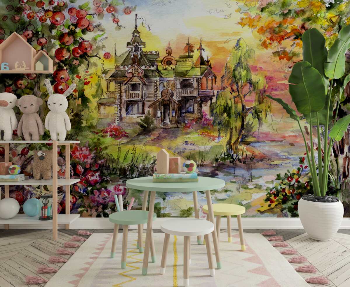 Tapeta Fototapeta Bajkowy dom nad rzeką w lesie (artykuł a98223 ) z kategorii Fototapety Pejzaże