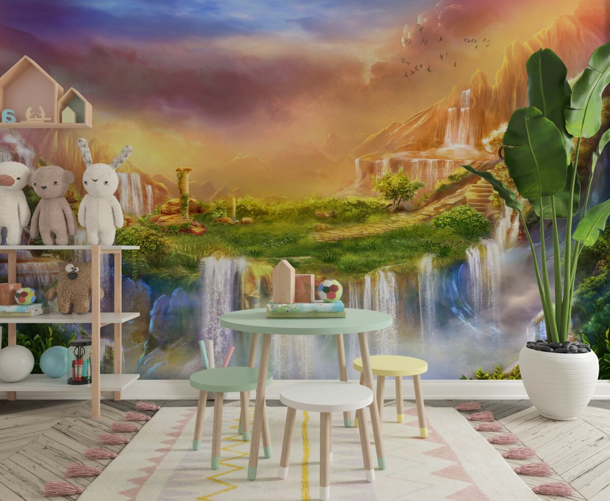 Tapeta Fototapeta Bajkowy krajobraz z wodospadami (artykuł a98058 ) z kategorii Fototapety Pejzaże