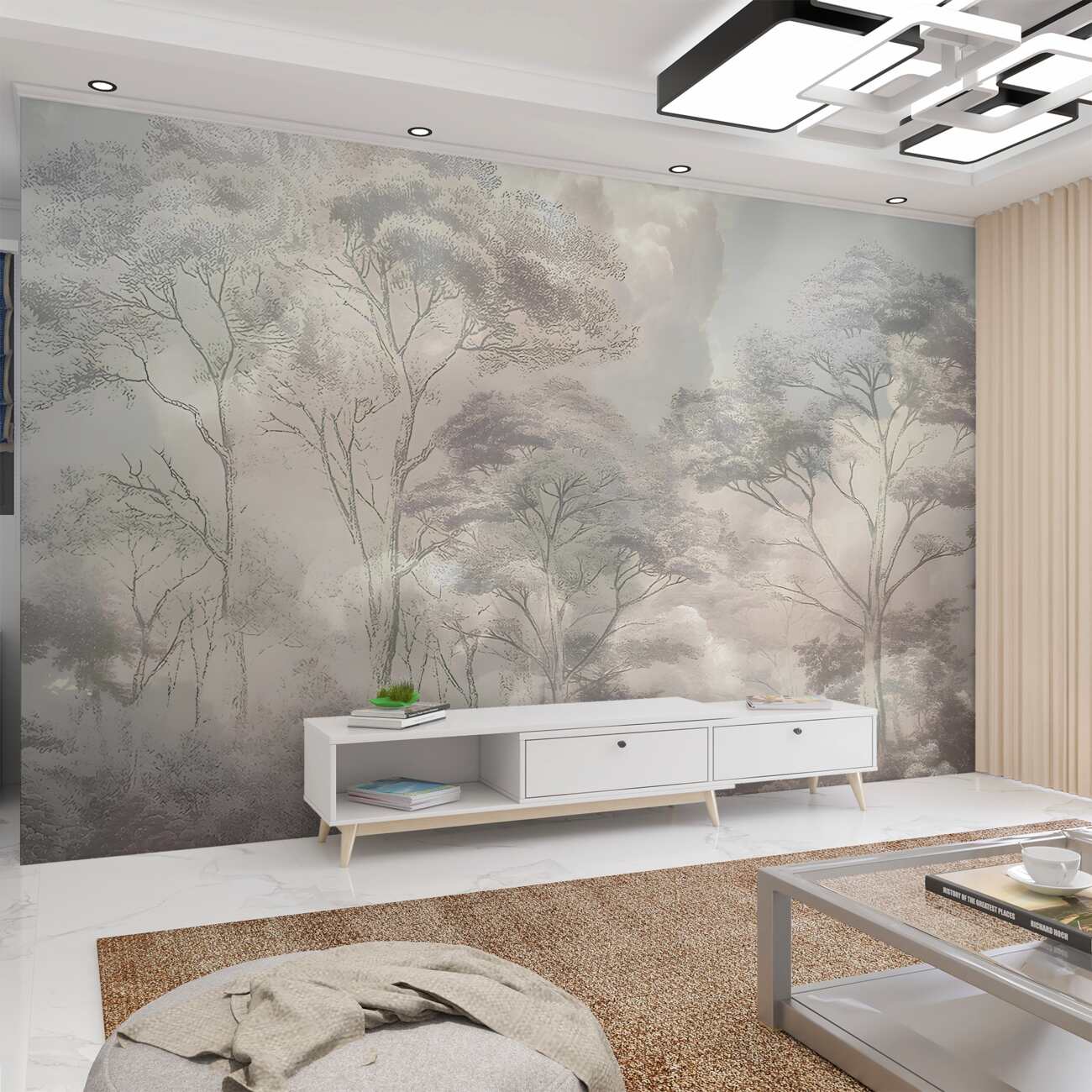 Tapeta Fototapeta Chmury otaczają smukły las (artykuł a99163 ) z kategorii Fototapety Pejzaże