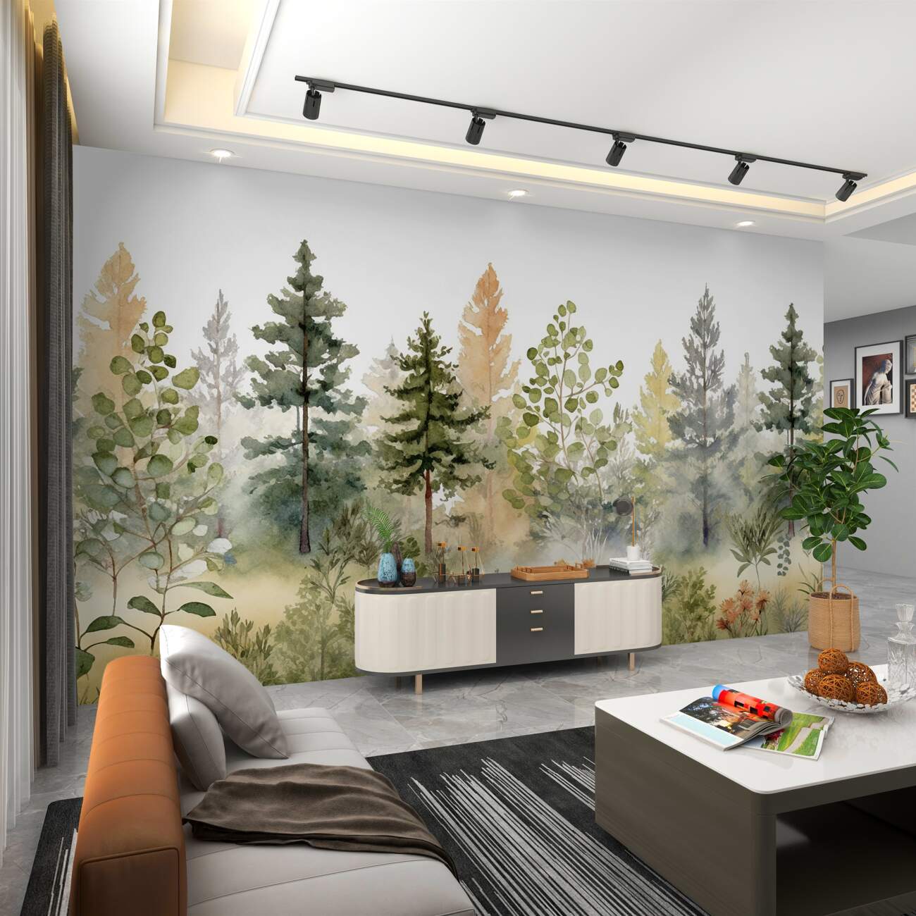 Tapeta Fototapeta Śpiąca akwarela z drzew iglastych (artykuł a99113 ) z kategorii Fototapety Pejzaże