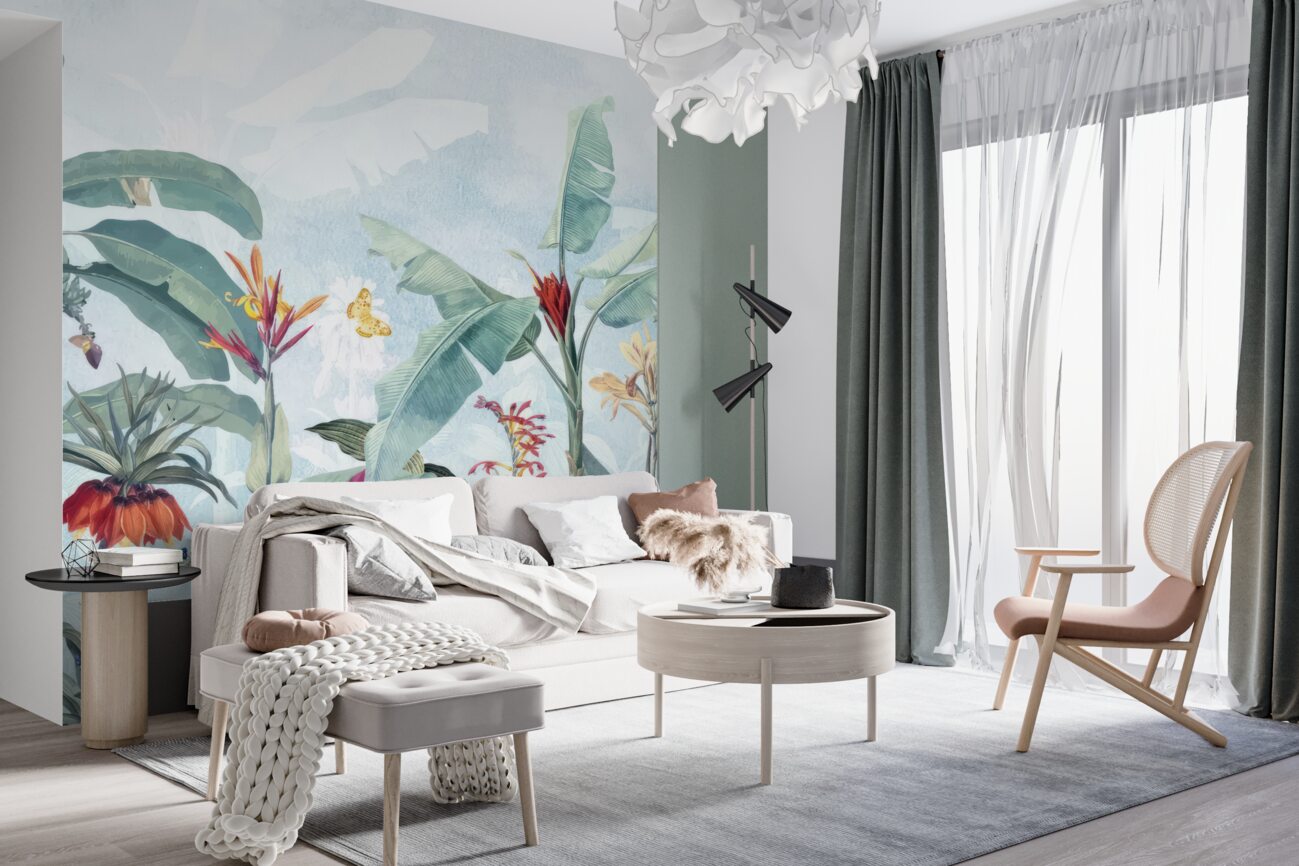 Tapeta Fototapeta Tropikalne kwiaty po deszczu w lecie (artykuł a99500 ) z kategorii Fototapety Pejzaże