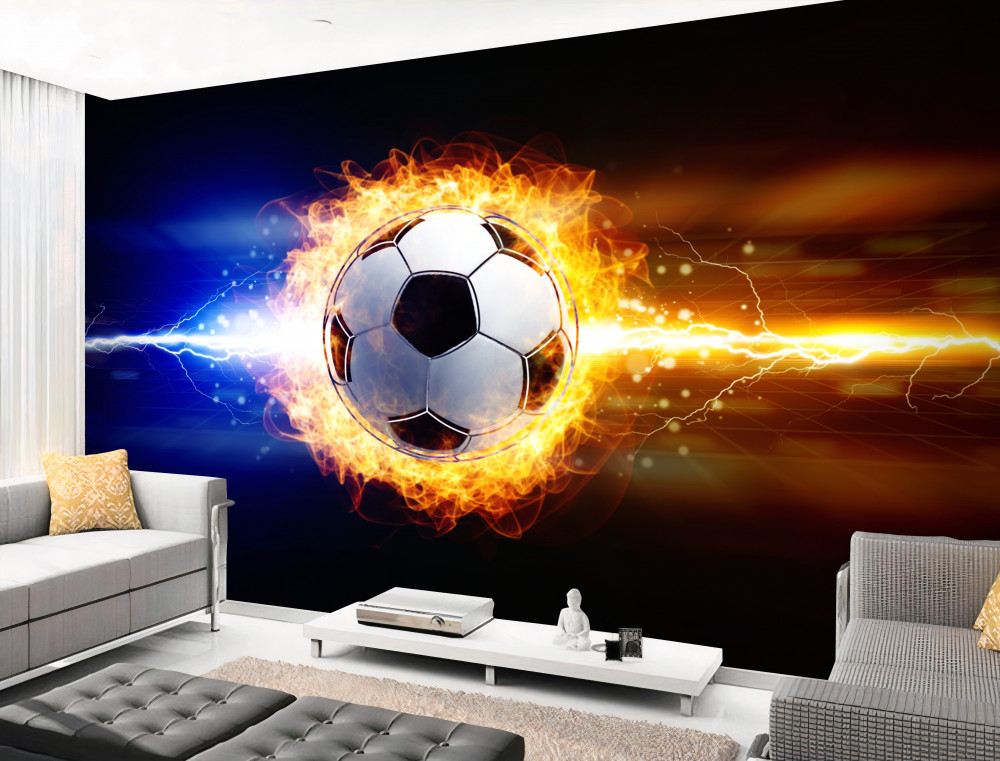 Tapeta Fototapeta piłka nożna w promieniach ognia (artykuł a93337 ) z kategorii Fototapety Piłka Nożna