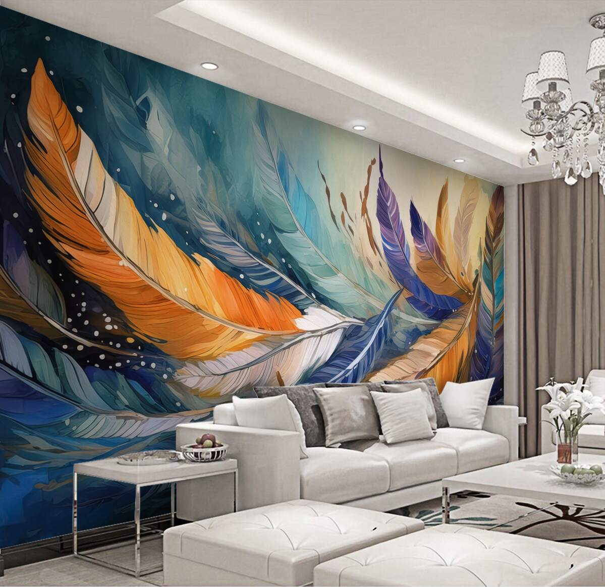 Tapeta Fototapeta Jasne jesienne pióra na wietrze (artykuł a98284 ) z kategorii Fototapety Pióra