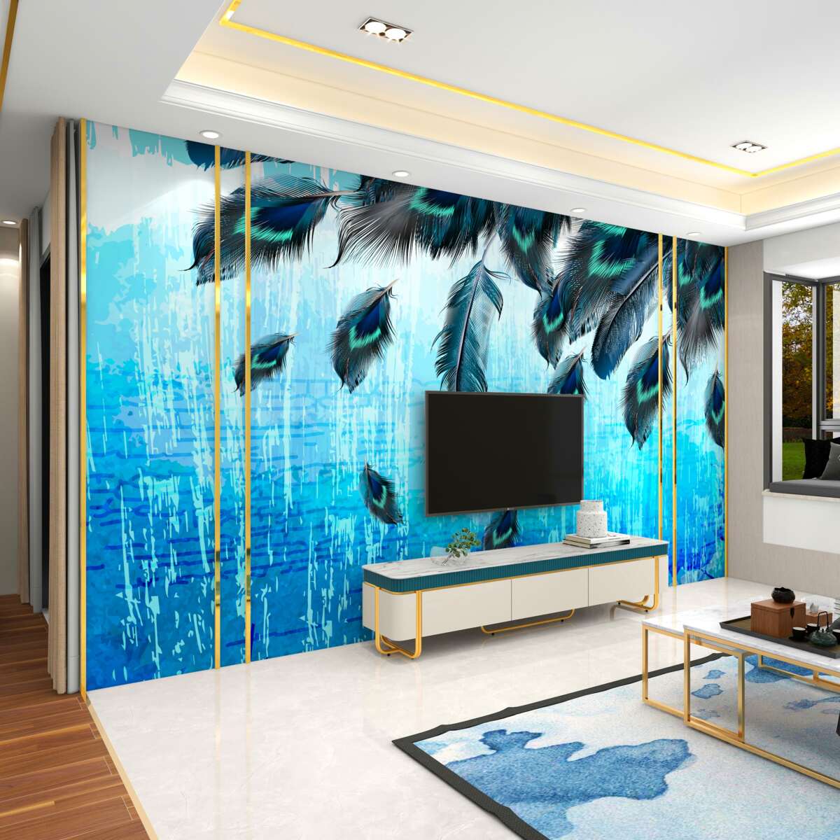 Tapeta Fototapeta Pawie pióra na niebieskim tle (artykuł a92858 ) z kategorii Fototapety Pióra