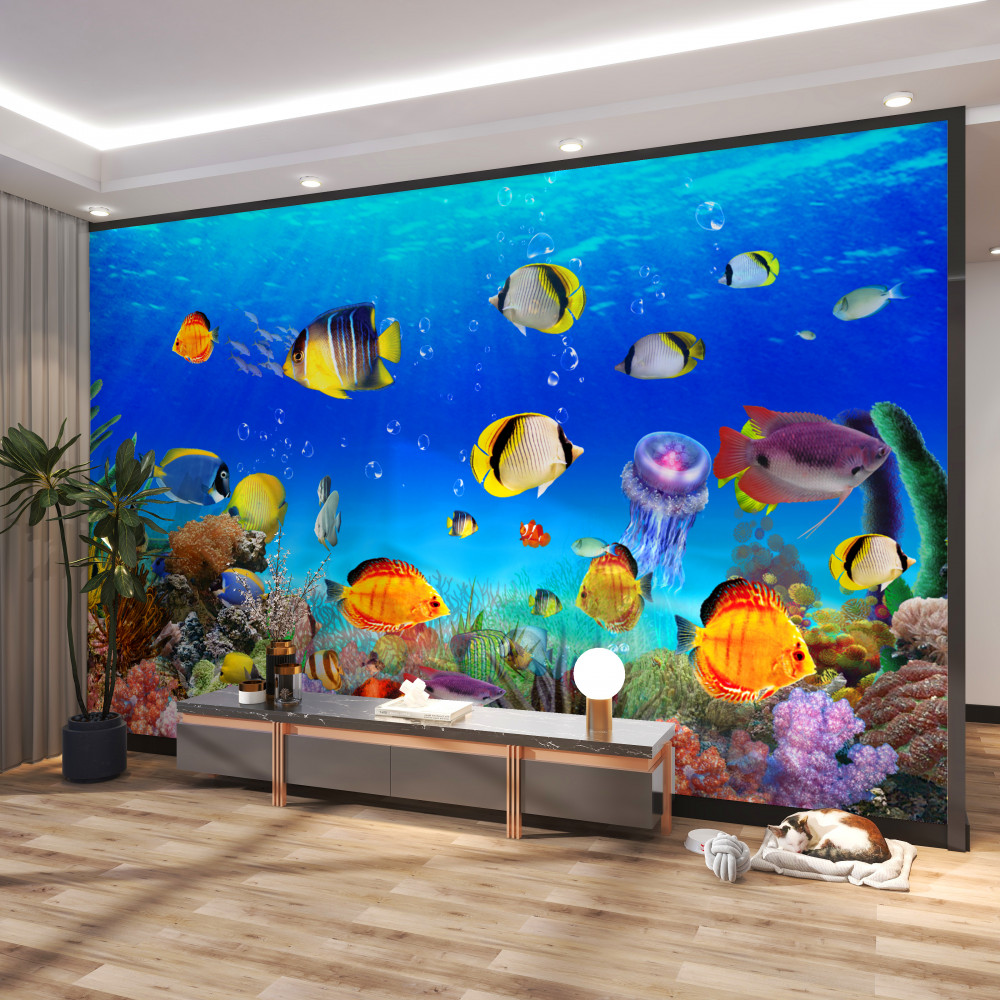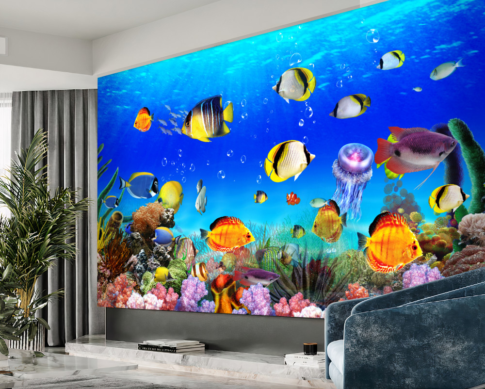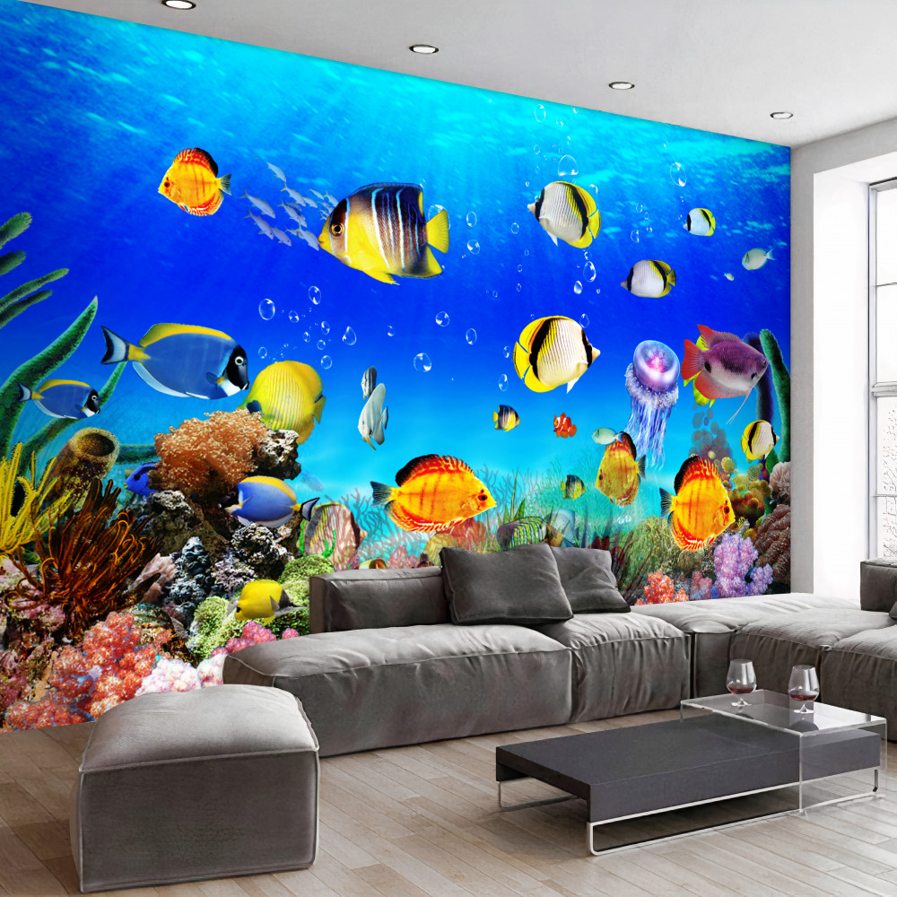 Tapeta Fototapeta błyszczące ryby w błękitnej wodzie (artykuł a91867 ) z kategorii Fototapety Podwodny świat