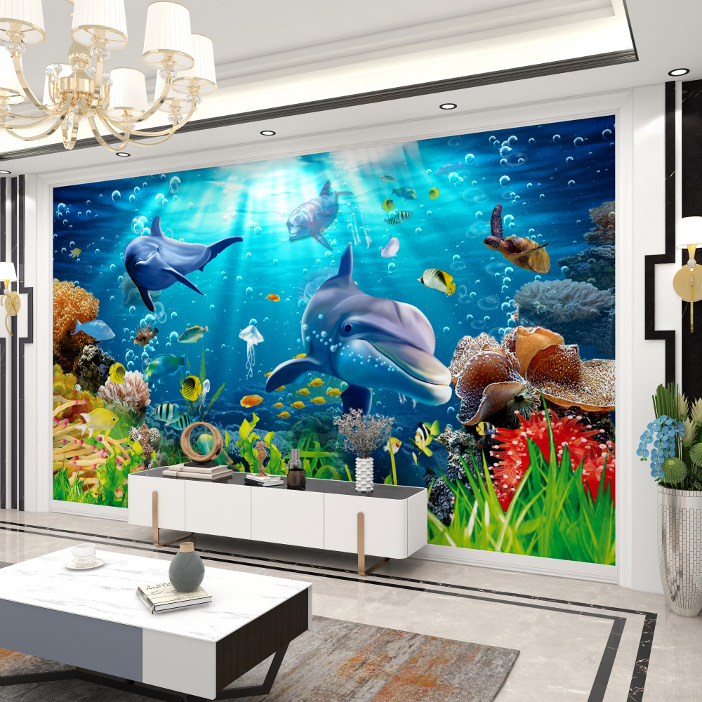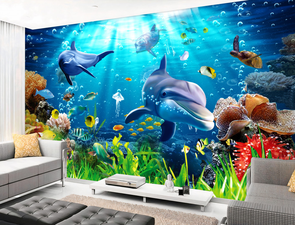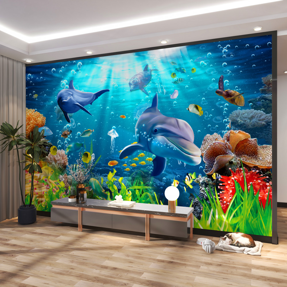 Tapeta Fototapeta delfiny na dnie morza (artykuł a90357 ) z kategorii Fototapety Podwodny świat