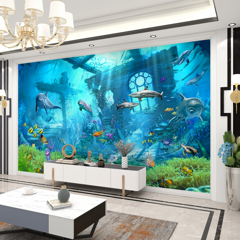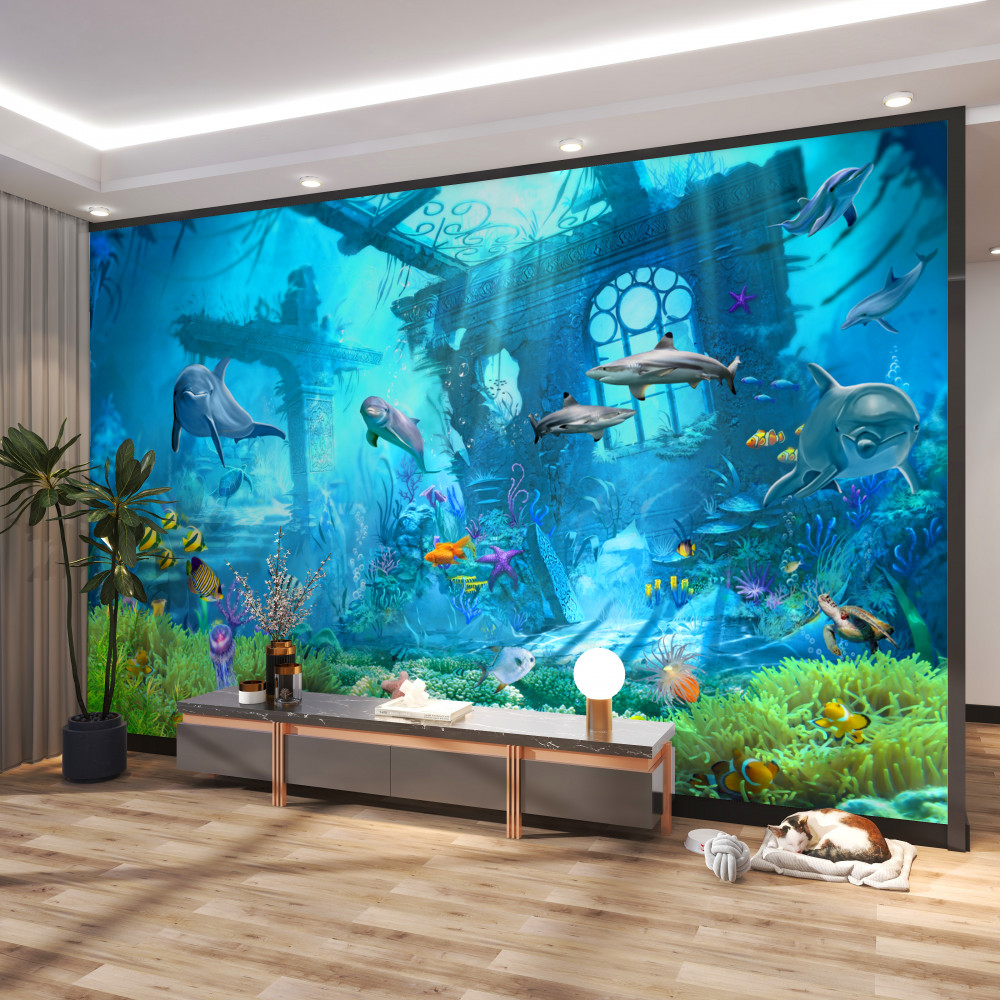 Tapeta Fototapeta delfiny na dnie morza (artykuł a92080 ) z kategorii Fototapety Podwodny świat