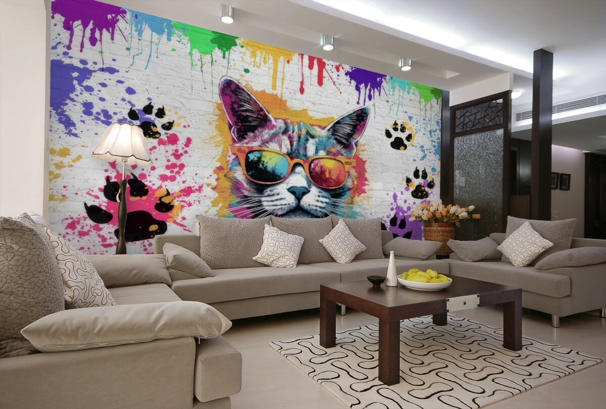 Tapeta Fototapeta Kot w okularach (artykuł a97953 ) z kategorii Fototapety Pop-art
