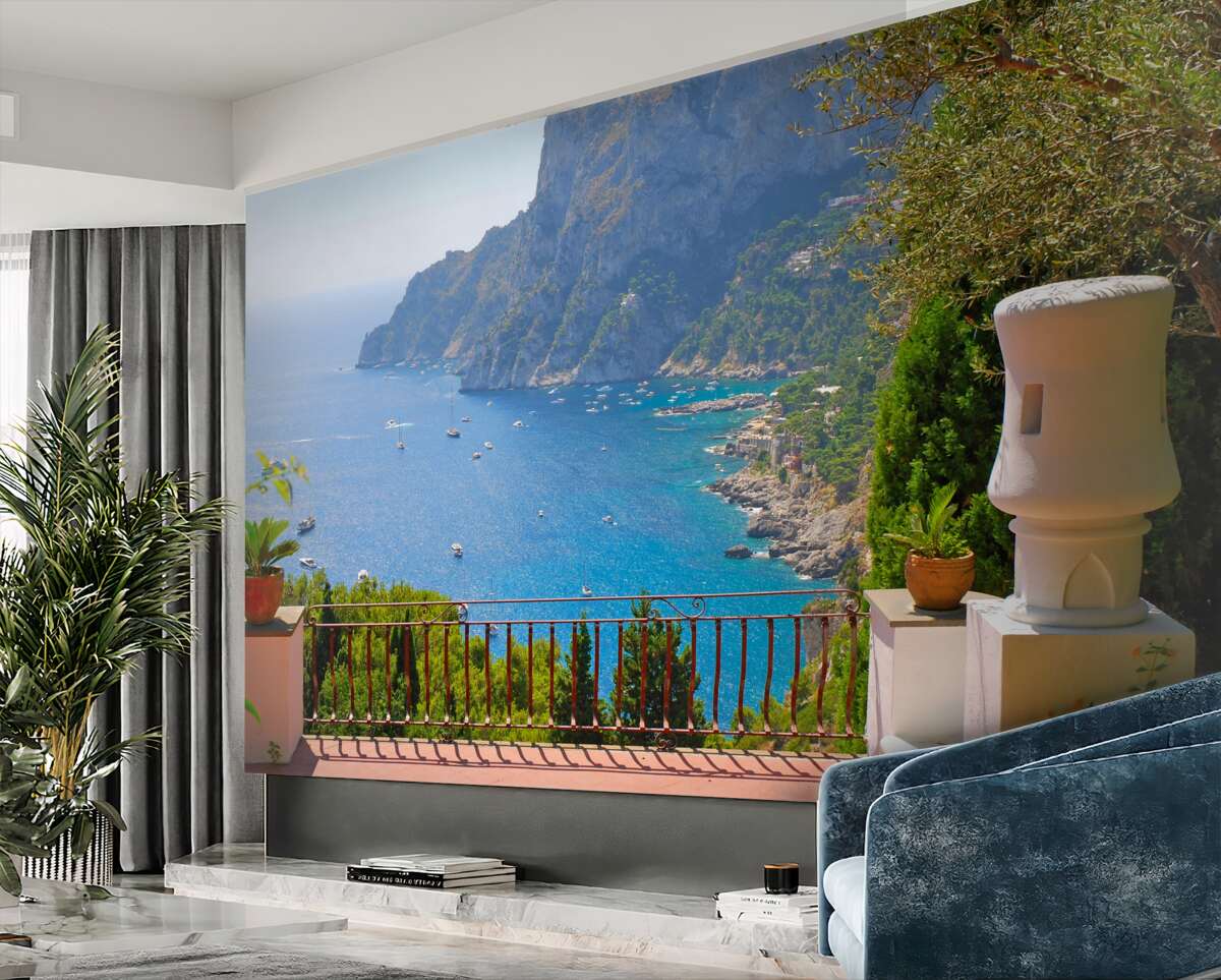 Tapeta Fototapeta balkon z tarasem i widokiem na ocean (artykuł a95443 ) z kategorii Fototapety Popularne