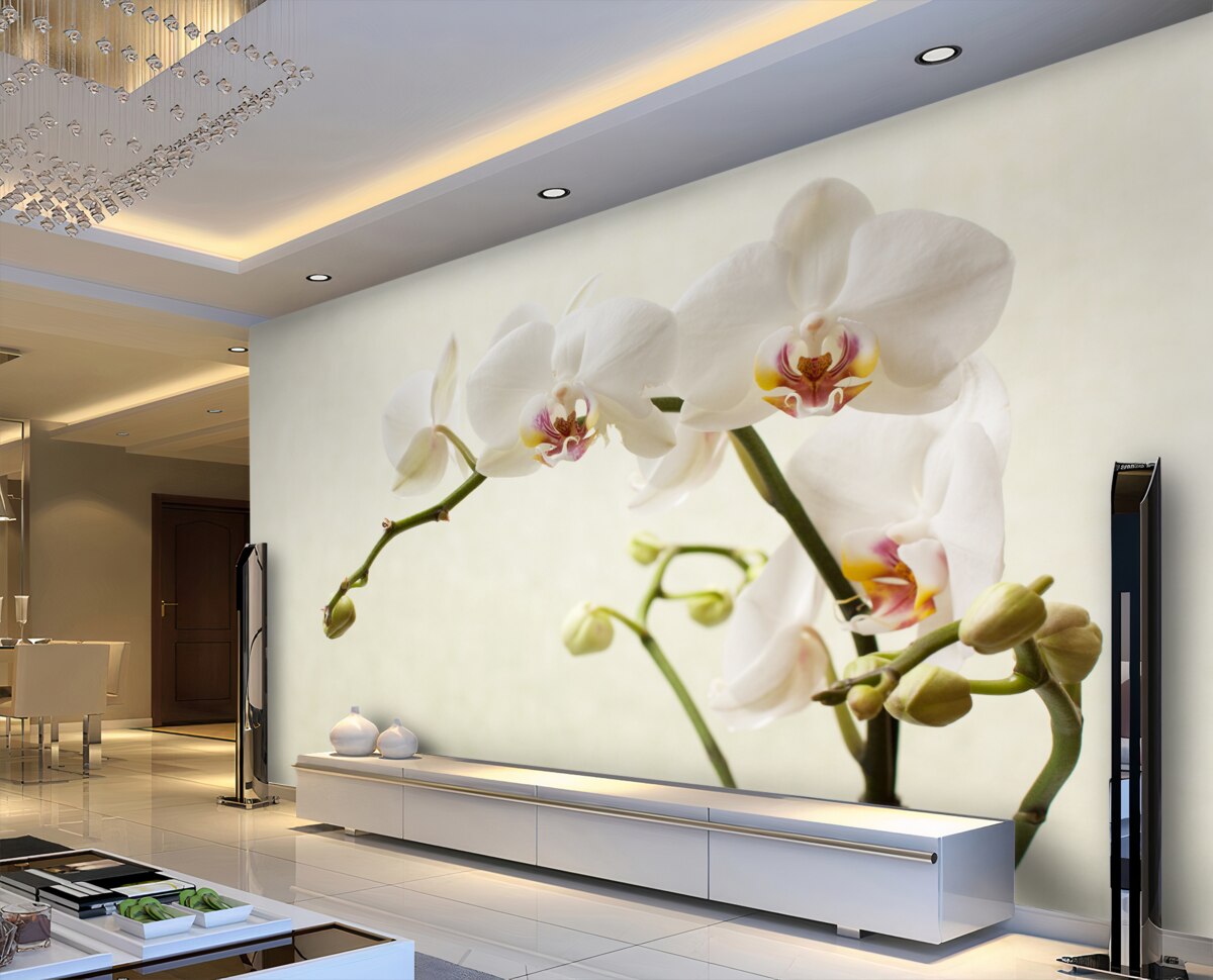 Tapeta Fototapeta białe gałązki orchidei na jasnym tle (artykuł a95990 ) z kategorii Fototapety Popularne