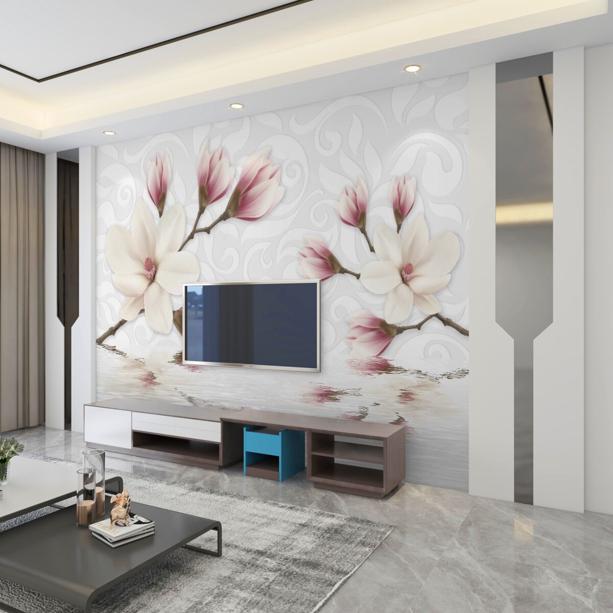Tapeta Fototapeta białe i różowe kwiaty nad wodą (artykuł a97044 ) z kategorii Fototapety Popularne
