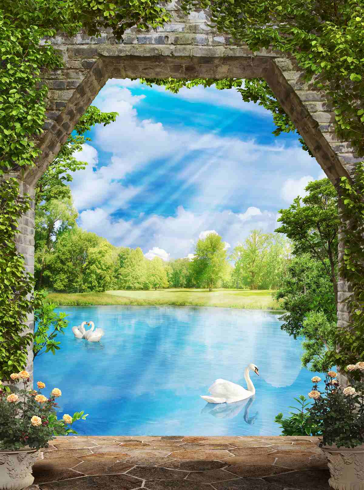 Tapeta Fototapeta białe łabędzie na jeziorze (artykuł a96938 ) z kategorii Fototapety Popularne