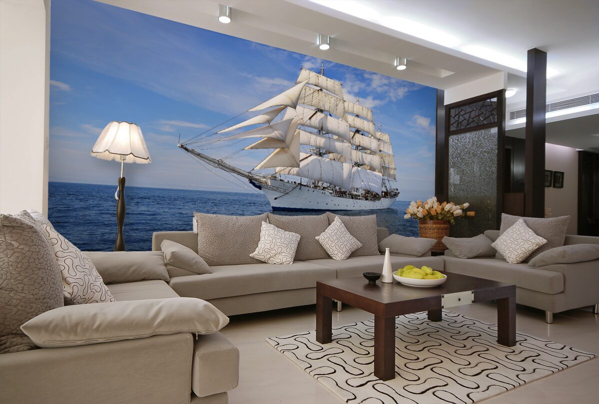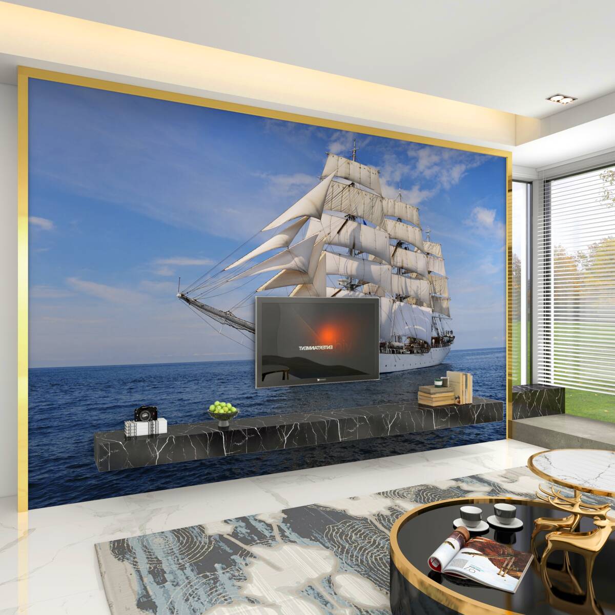 Tapeta Fototapeta biały statek z żaglami (artykuł a97336 ) z kategorii Fototapety Popularne