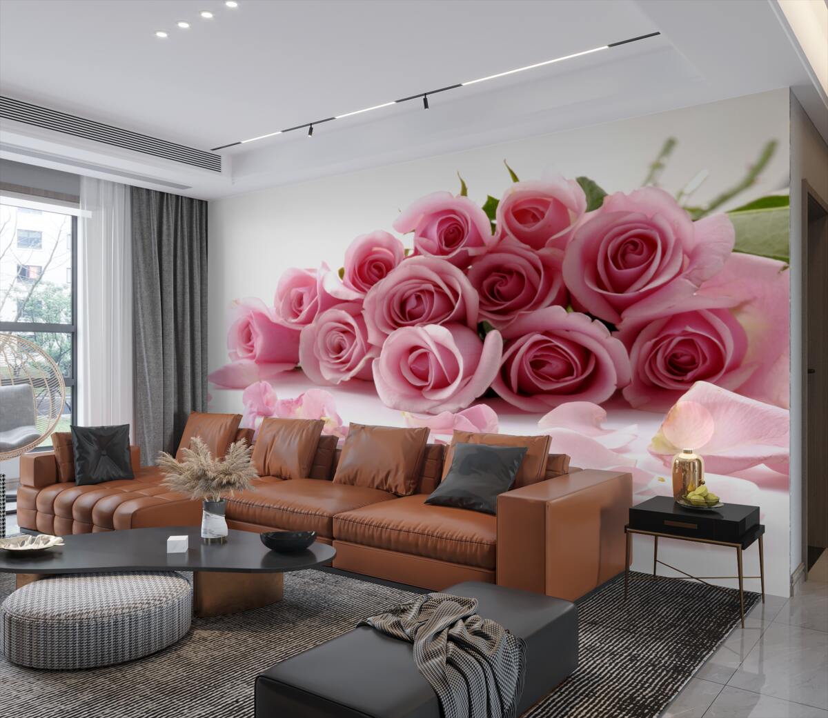 Tapeta Fototapeta bukiet delikatnych różowych róż z płatkami w pobliżu wody (artykuł a96066 ) z kategorii Fototapety Popularne