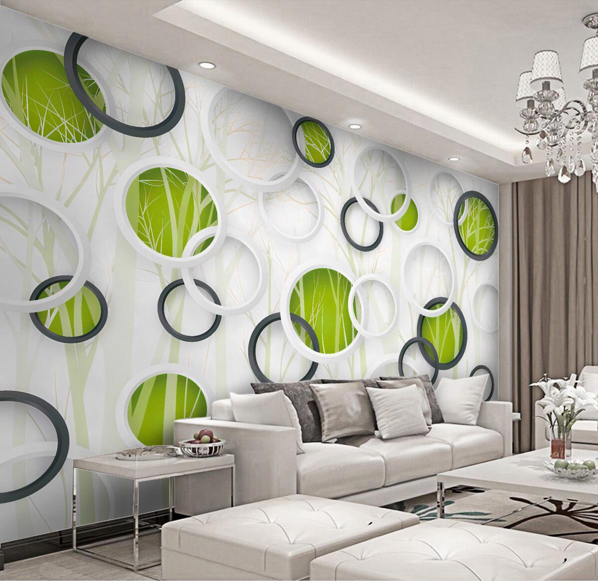 Tapeta Fototapeta czarno-białe kółka z zielonym (artykuł a97043 ) z kategorii Fototapety Popularne
