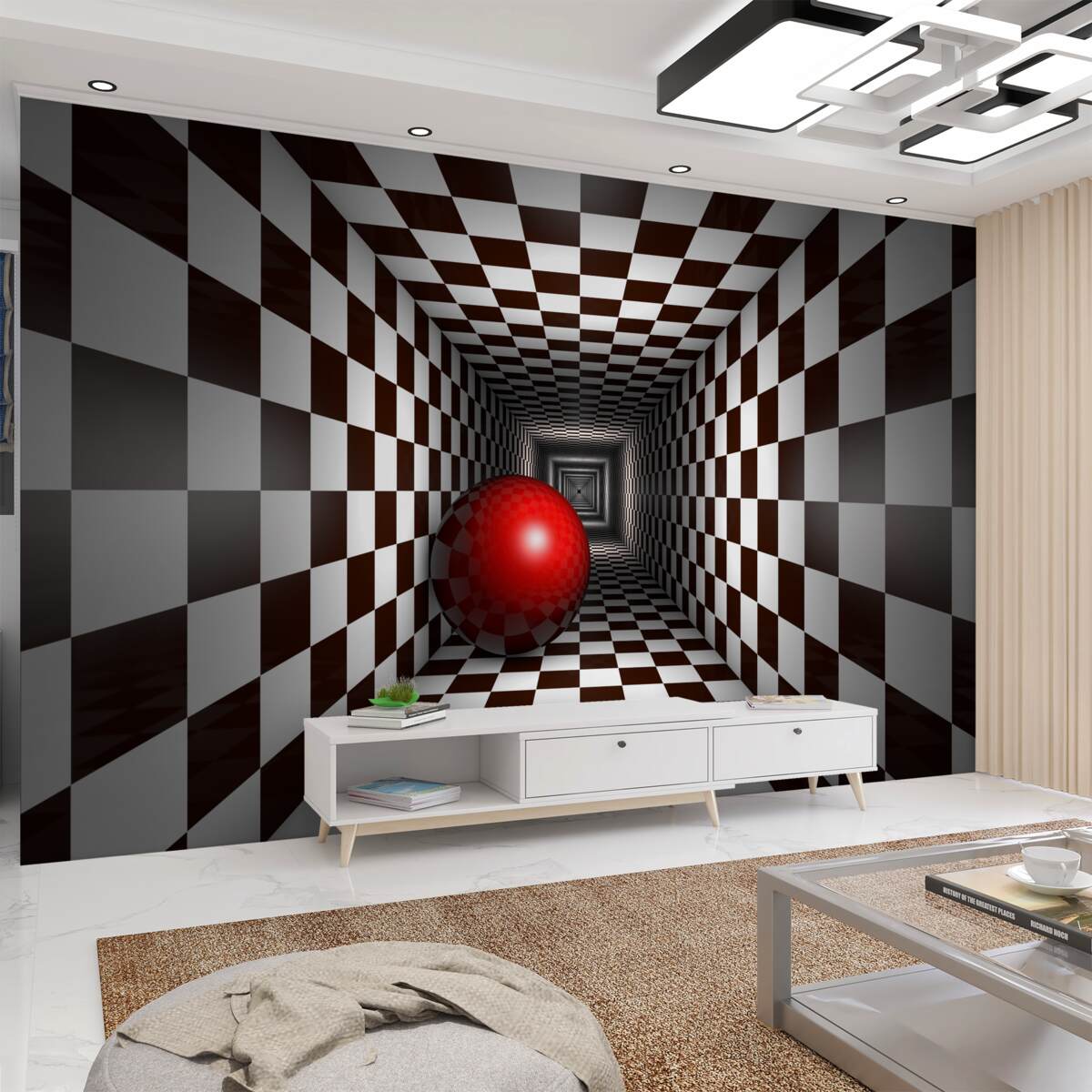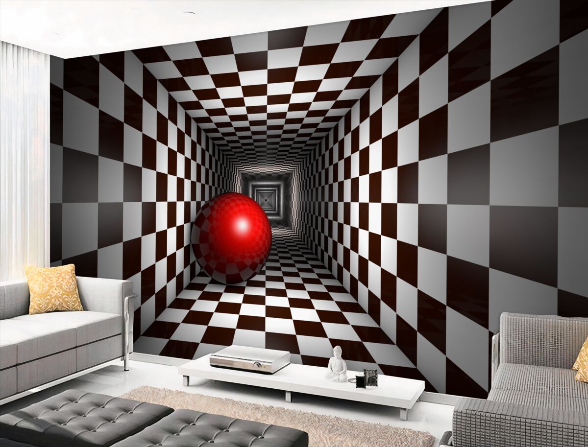 Tapeta Fototapeta czerwona piłka na korytarzu szachowym (artykuł a96363 ) z kategorii Fototapety Popularne