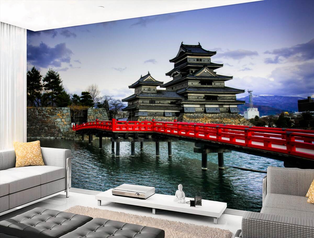 Tapeta Fototapeta czerwony most nad rzeką w Japonii (artykuł a95648 ) z kategorii Fototapety Popularne