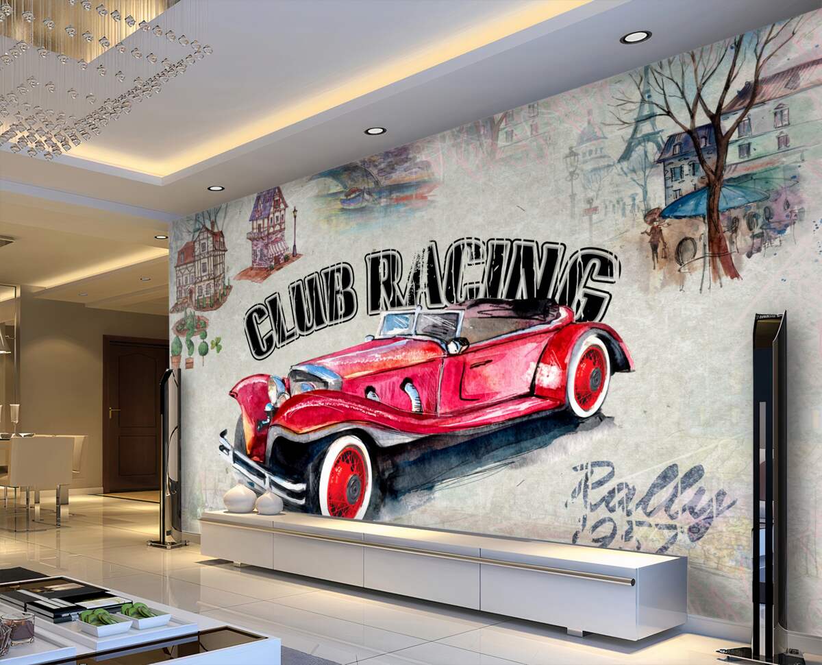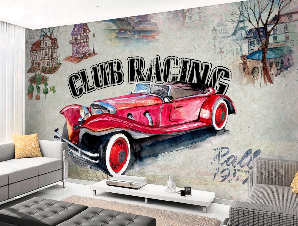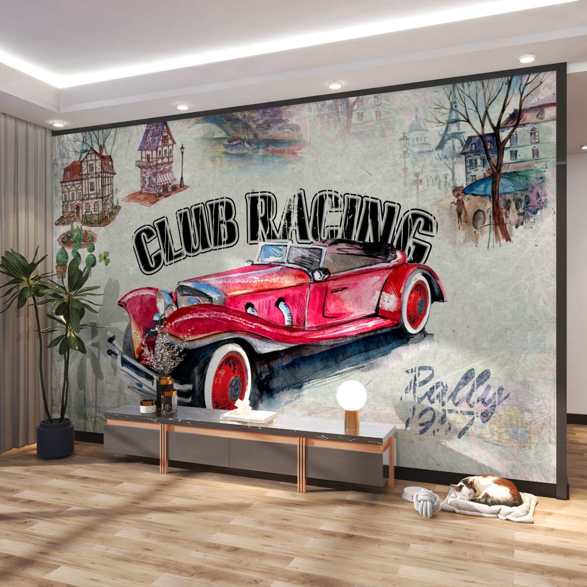 Tapeta Fototapeta czerwony zabytkowy samochód (artykuł a96579 ) z kategorii Fototapety Popularne